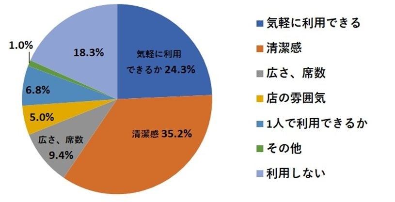 イートインスペースの利用が最も多いのは「ショッピングセンター」で、回答数の4割近くを占めています。大型のショッピングセンターでは、業態の異なる飲食店が同じフロアに集まっているフードコートもイートインスペースと捉えられているのでしょうか。