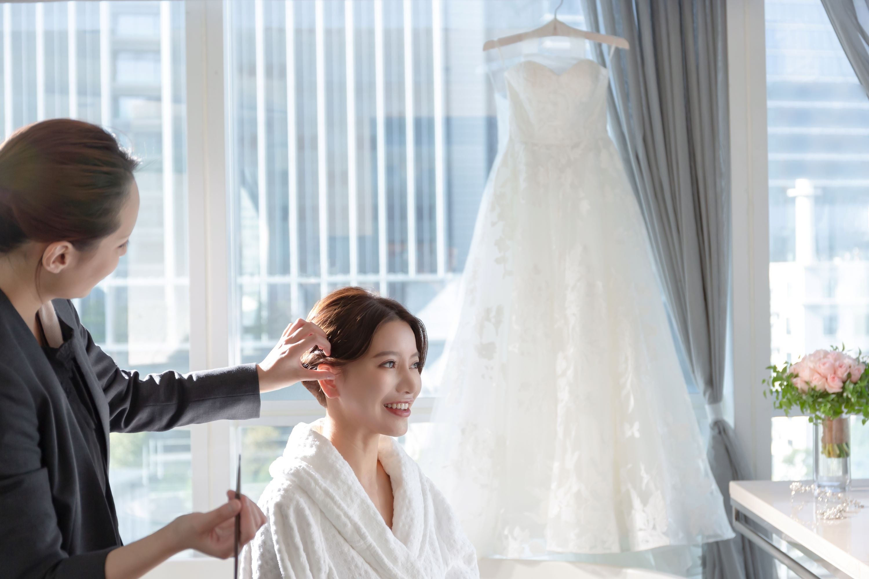 海外有名ハイブランドのウェディングドレスから、和装やタキシード、ご参列者様の礼装まで、数多くのラインナップをご用意。ホテルまたは店舗にて、ご希望を伺い、運命の一着にめぐりあうお手伝いをさせていただきます。また、資生堂美容室が贈る、お二人の特別な日のための一流ヘアメイクアップ。リハーサルから本番まで丁寧にサポートし、ご新婦様の美しさを引き立てます。