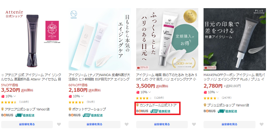 Yahoo!ショッピングは生活雑貨や家電などが主流と思われがちではありますが、コスメやスキンケアブランドも豊富で以外にも最安値の商品が販売されていることも多いモールとなっています。