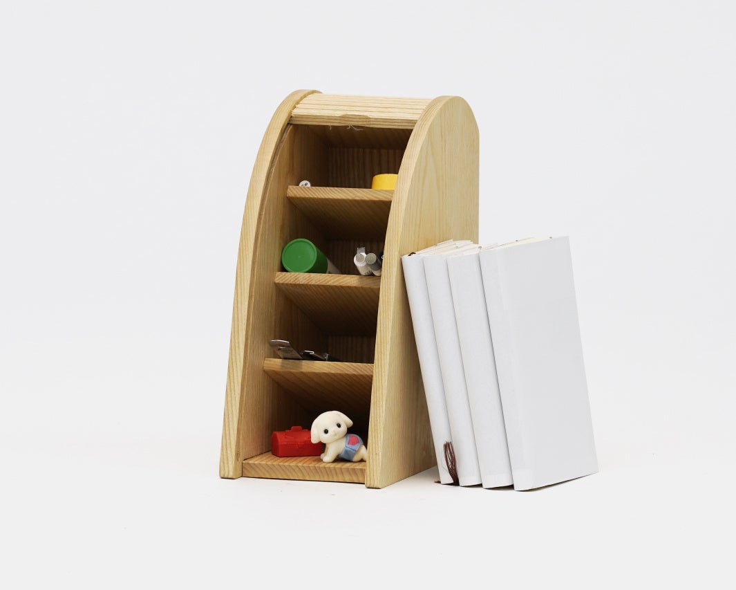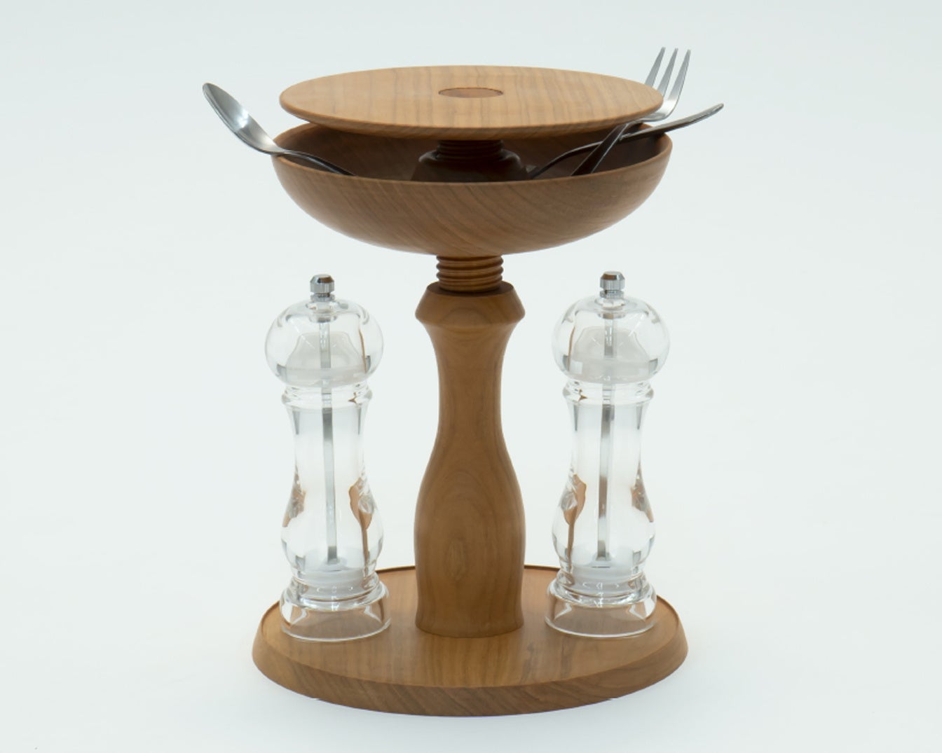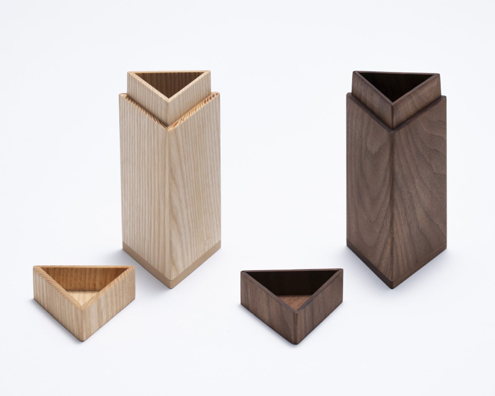 大量生産による機能性重視のプロダクトとは反対に、木製ネジのトレイを回して閉じるという非生産的な行為によって機能が成り立つコンテイナー。