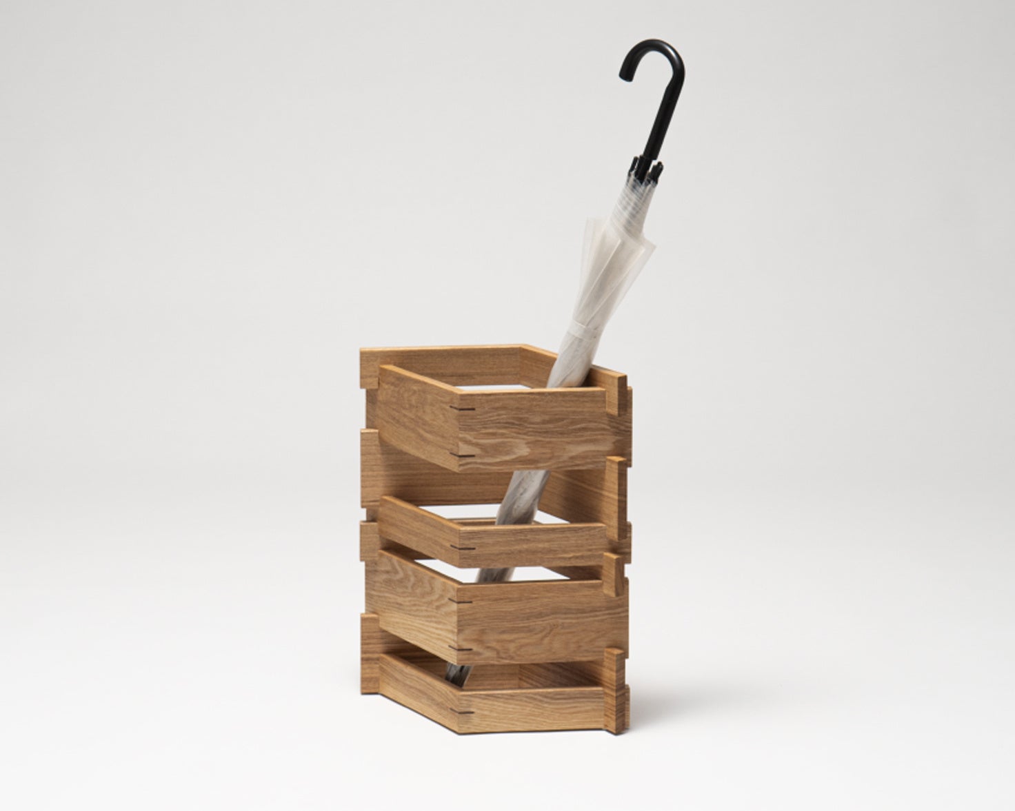 空間に馴染む傘が帰る“巣”のような傘立て。