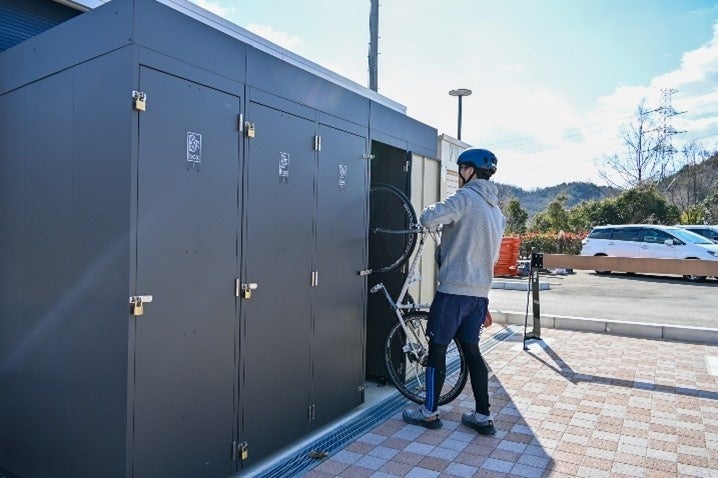 また、自転車を縦置きで保管できるロッカー(施錠可能)や駐輪できるラックやスタンドも設置しています。