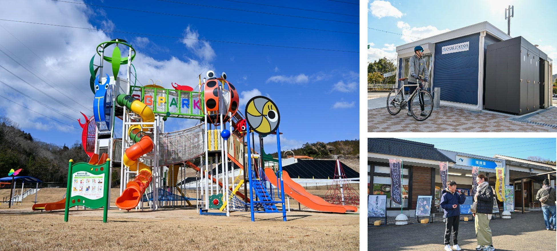 園内には、シャワー室・更衣室などを備えた空調付きのサイクルステーションなども完備しており、こどもだけでなく、幅広い世代が楽しめる公園です。
