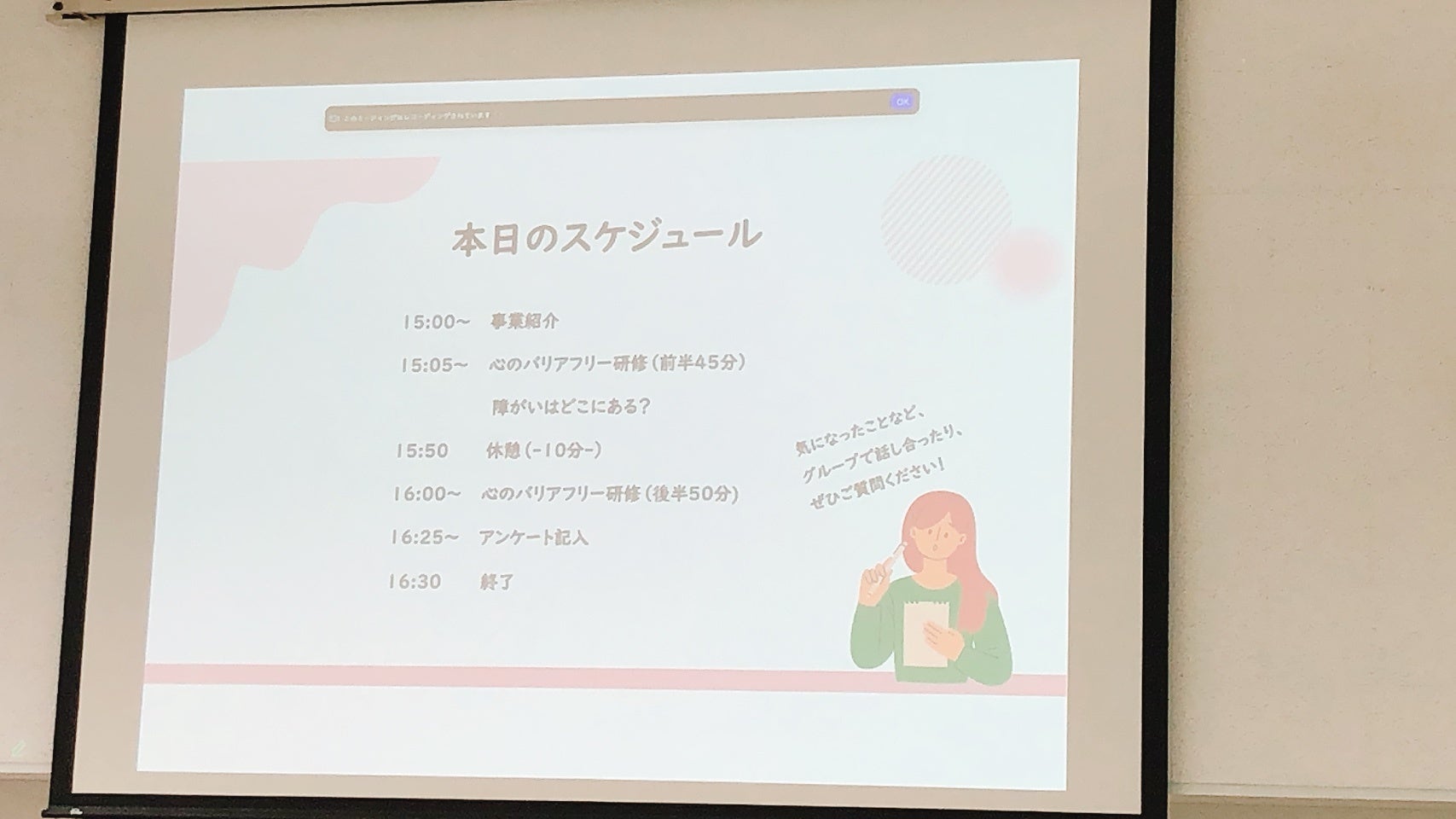 2025年2月27日(木)あいプラングループのスタッフからの呼びかけにより、「札幌市 心のバリアフリー研修」の出前研修が社内で開催されました。