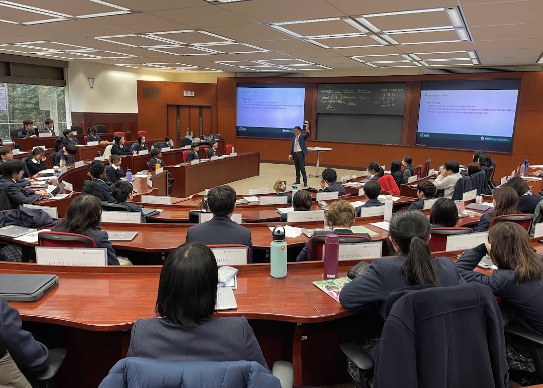 国際高等学校では、年に2回、名古屋商科大学及び大学院の教授を招き、ビジネスに関する特別授業を開催しています。また、通常の教科の授業においても、1単元に1度程度ハーバード流ケースメソッドを用いた授業を行っています。これにより、生徒は思考力、問題発見・解決力、意思決定能力など、生涯にわたって重要となるさまざまな