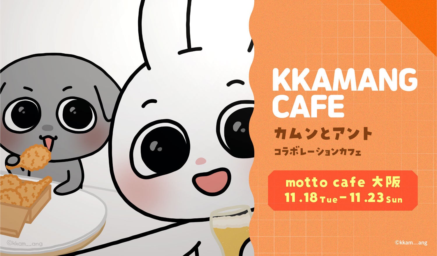 SNSフォロワー140万人超えの人気韓国キャラクター「カムンとアント」の関西でのコラボカフェの予約が11月7日19時より始まりましたが、ほとんどの席が予約開始後まもなく埋まってしまったため、急遽予約可能席を増席いたしましたことをお知らせいたします。