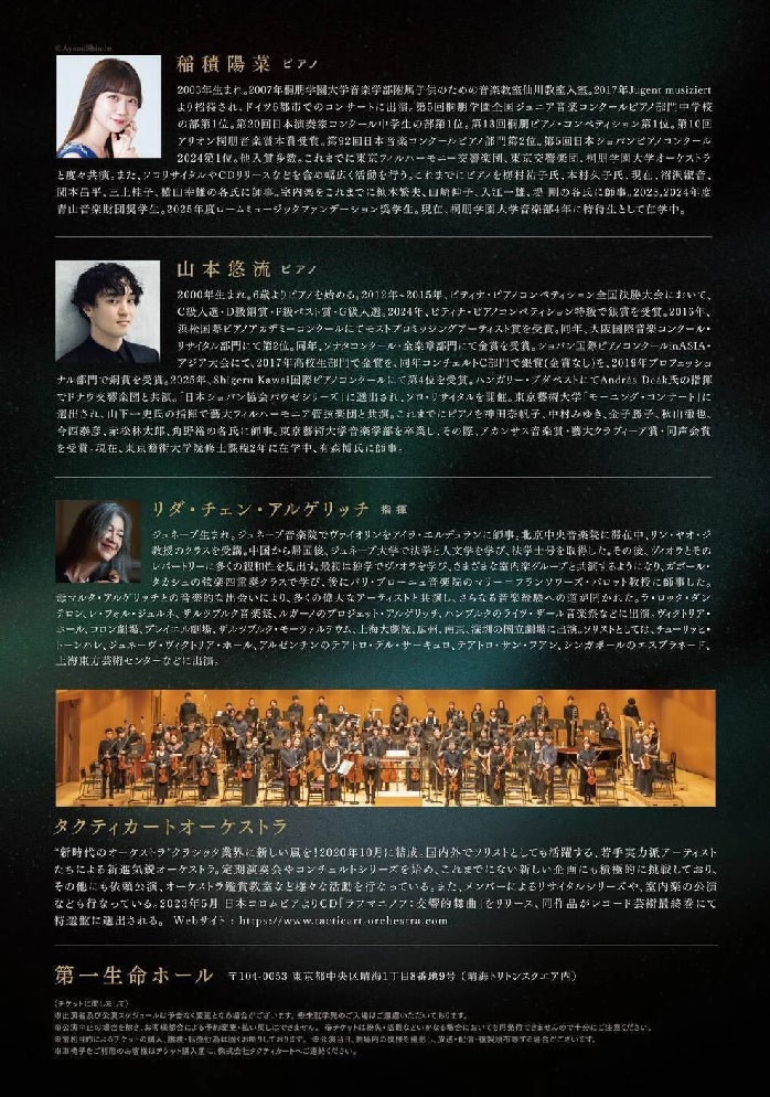 本発表と同時に、リダ・チェン・アルゲリッチ氏が、タクティカートオーケストラの客演指揮者に就任いたします。