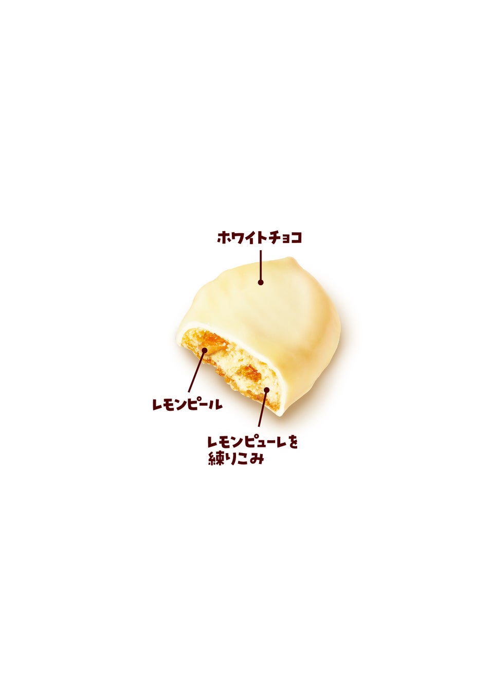 ・瀬戸内大長レモンピューレとレモンピールを練り込んだしっとりとした生地をホワイトチョコでコーティングした、レモンケーキ風のカントリーマアム