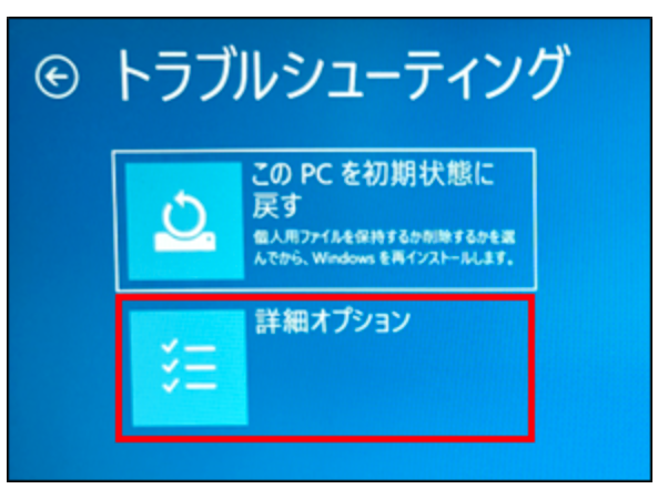 Step4:「トラブルシューティング」から「詳細オプション」を選択します。