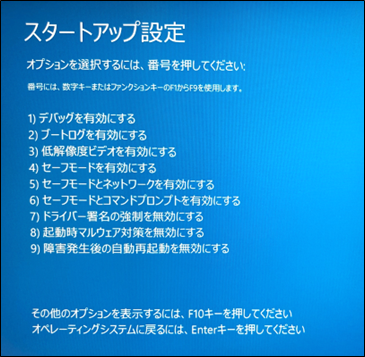 Step7:「スタートアップ設定」でセーフモードを有効にします。キーボードの「4」キー、または「F4」キーを押します。