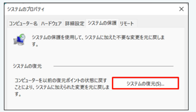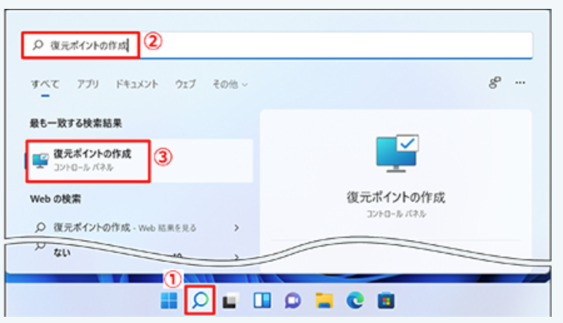 検索結果から 「復元ポイントの作成」 を開きます(③)。