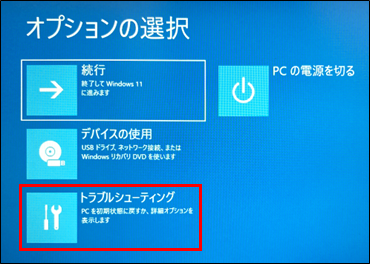 Step3:「オプションの選択」画面の「トラブルシューティング」を選択します。