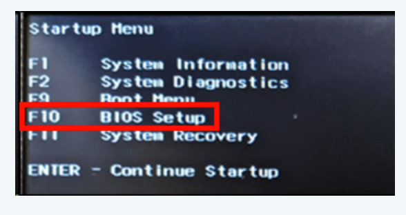 Step2:「スタートアップメニュー(Startup Menu)」が表示されるので、キーボードの「F10」