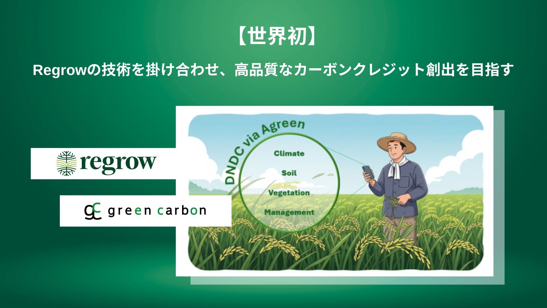 【世界初】Green Carbon株式会社が展開する「Agreen」と、RegrowのDNDCモデル「農業由来の排出量を精緻に特定する技術」を掛け合わせ、高品質なカーボンクレジット創出を目指す