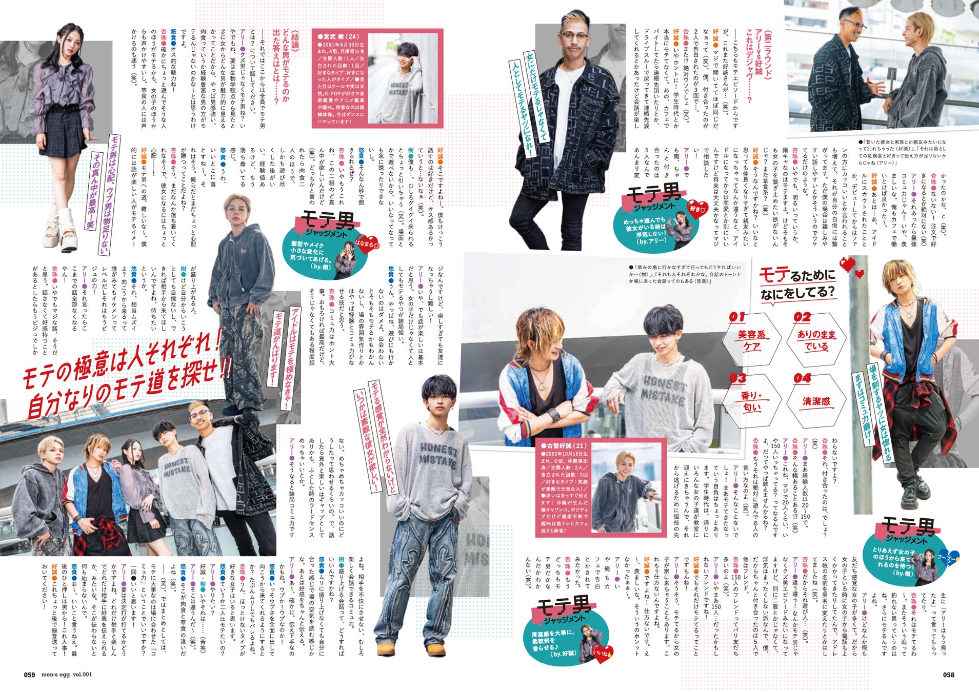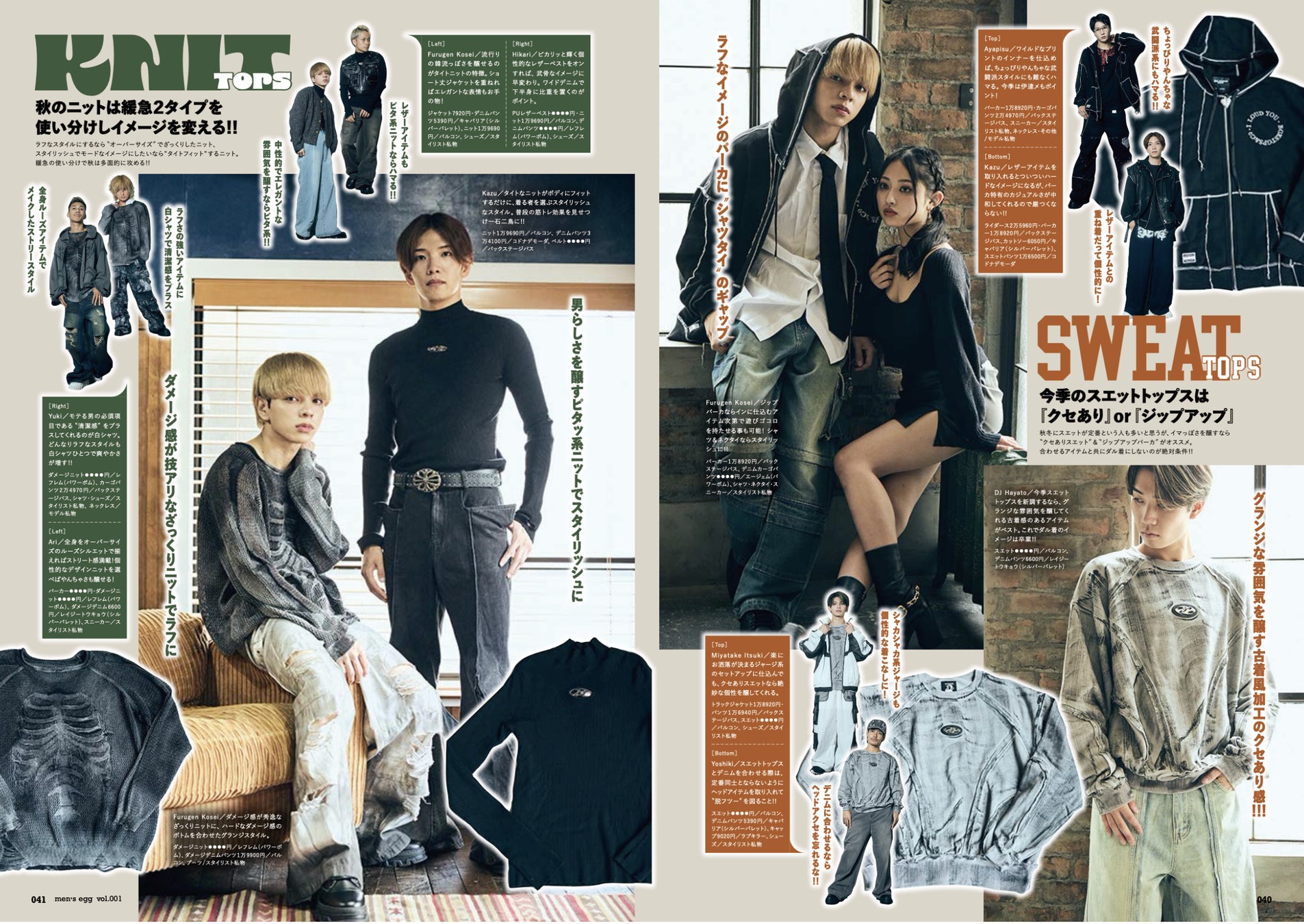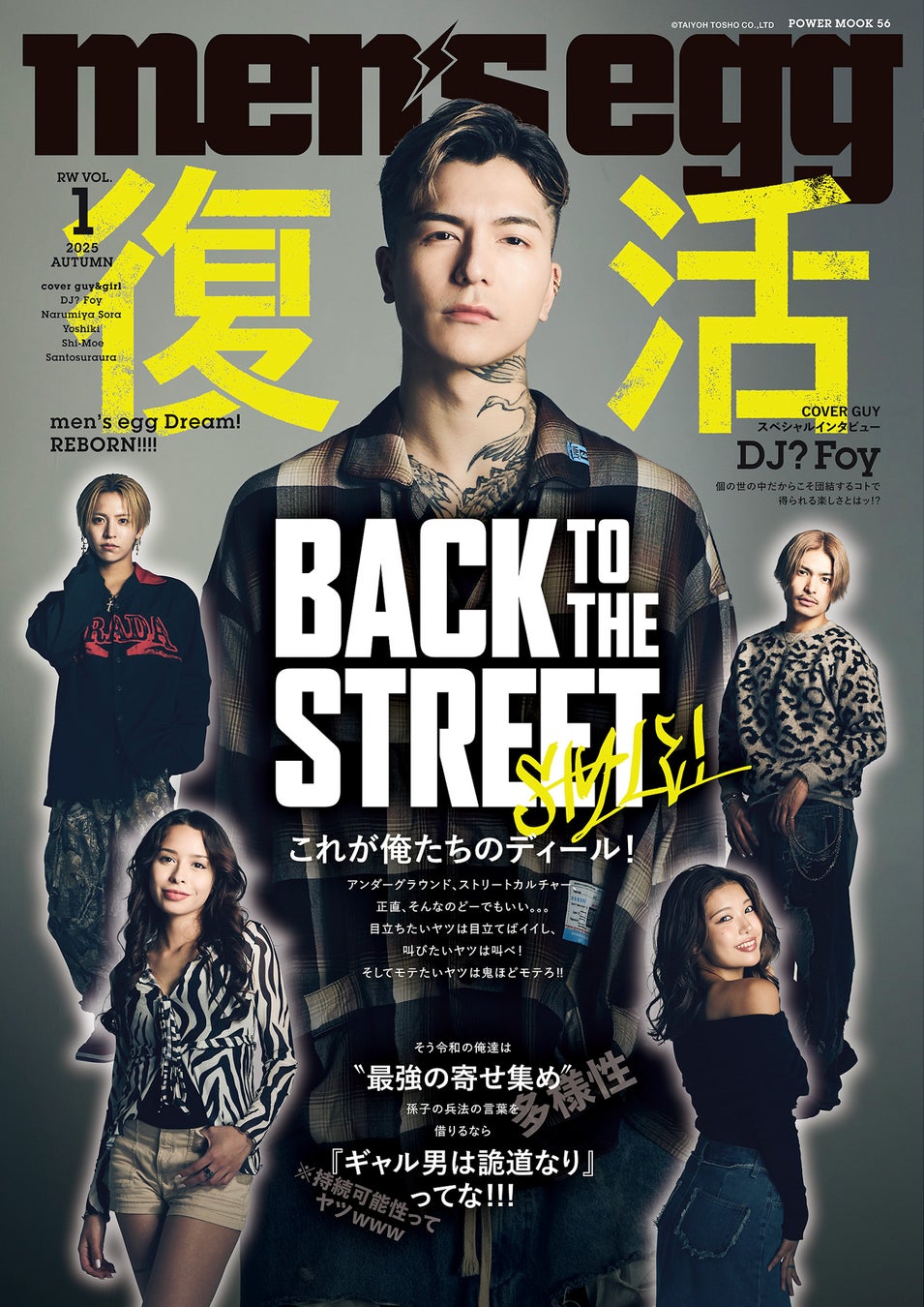 そんな[men’s egg(メンズ・エッグ)]が、2025年10月1日、装いも新たに”令和版”として復活を果たしました。新たな時代に即した特集はもちろんのこと、カバーモデルに音楽グループ「レペゼン地球(Repezen Foxx)」の元メンバーで、’23年にゲーミングチーム「NOEZ FOXX」を設立したDJ? Foy氏を起用。そして”個人の時代にあえて団結する必要性”に関してスペシャル・インタビューを慣行。同氏が語った目から鱗の明快な答えは必読です!! また、バーの店員、アイドル、DJ、会社員、ets…と新たに選抜されたモデルは多種多様、しかも最高齢モデルは41歳!!とまさに多様性な時代に即した布陣!そして、そんな彼らのライフスタイル情報から、メイク、ヘア、ファッション、はたまたモテるテクニック❤︎までをた~っぷり特集しています!!