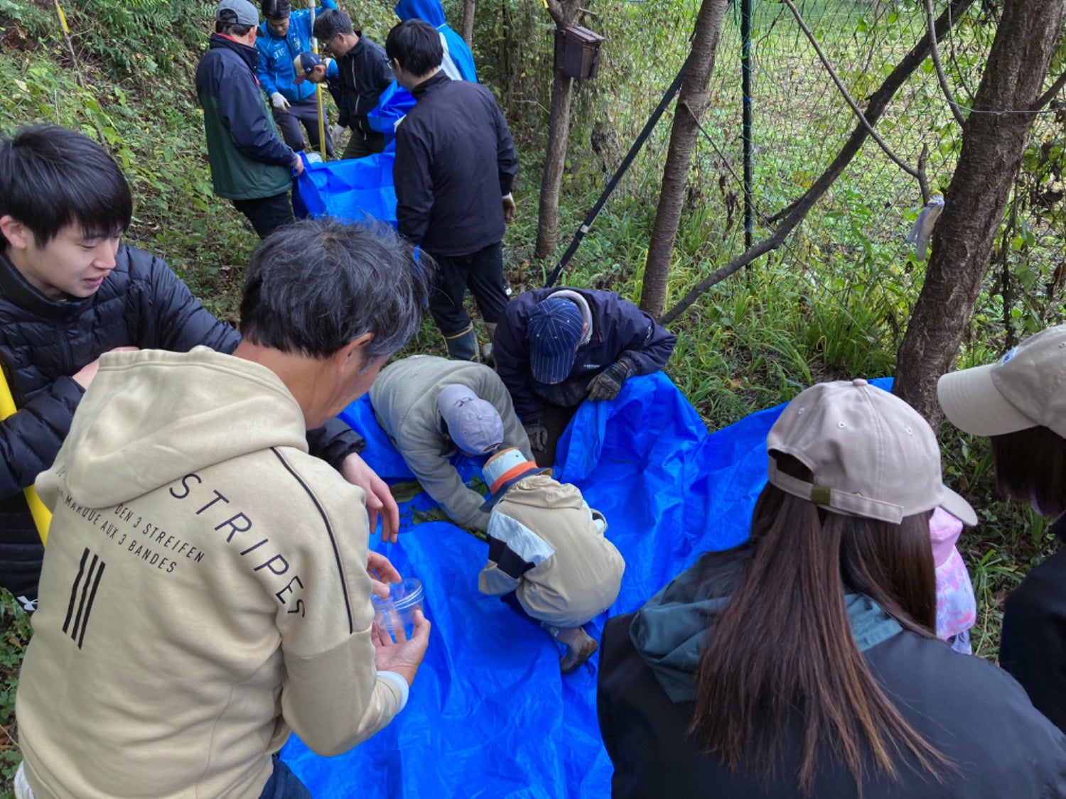 また、生物多様性保全活動の新しい試みとして、一般社団法人ヤマネ・いきもの研究所の湊秋作代表理事および饗場葉留果研究員をお招きし、生物多様性保全に対する企業の果たすべき役割やその重要性などについて講義をいただいた後、「いきものコレクションアプリ『Biome』」を活用しながら、再生した森林に生息するいきもの調査を体験いたしました。参加した子どもたちは、アプリを使い、熱心に森に生息するいきものを調査いたしました。
