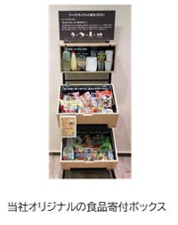 お客さまから「フードドライブ」活動へのご理解と、より一層のご支援を得られるよう、店内に当社オリジナルの食品寄付ボックスを常設しております。