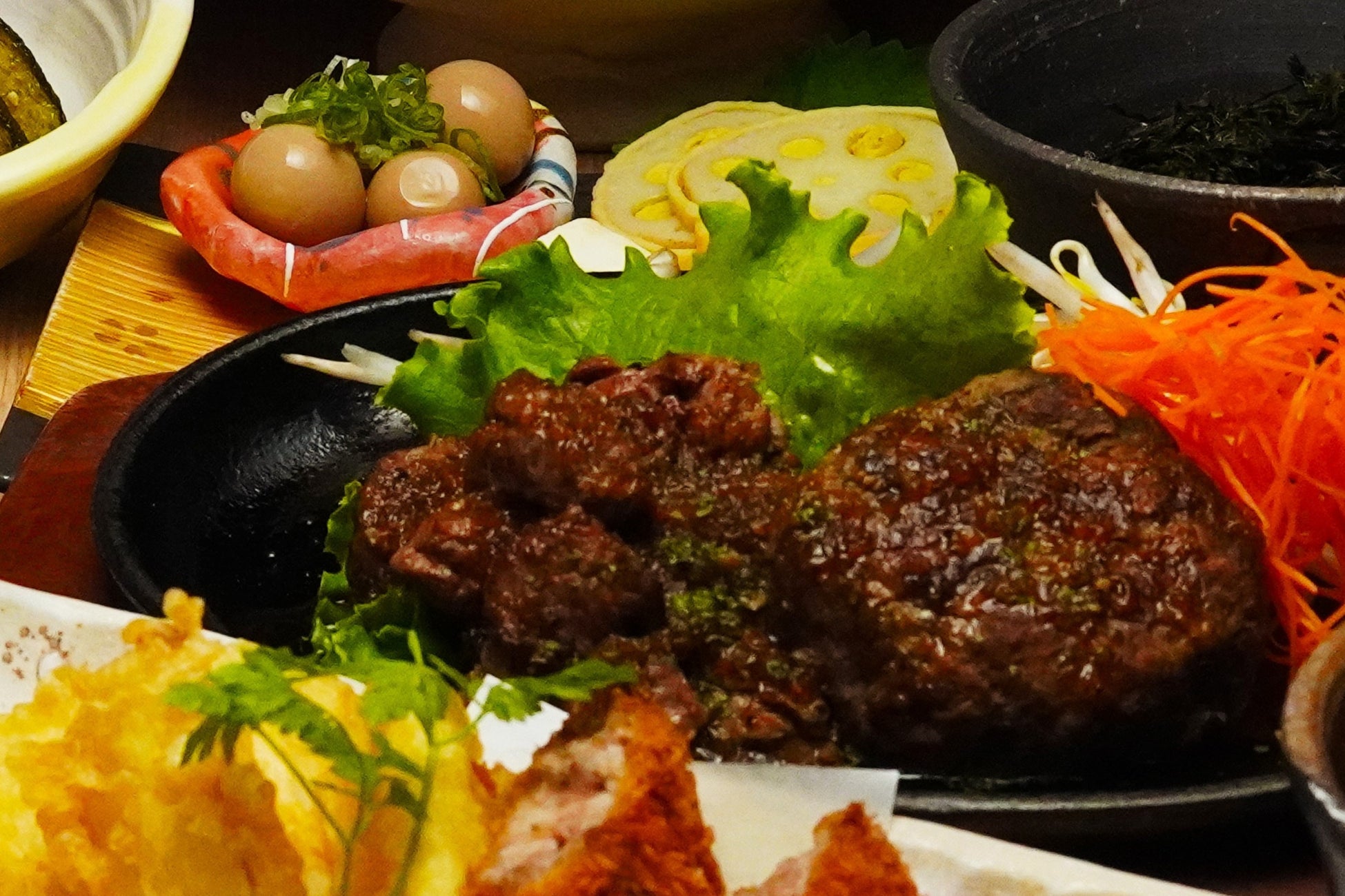 本コースでは、当店自慢の「純国産馬刺し」と「朝引き鶏」を中心に、馬肉ステーキやハンバーグ、ミンチカツなど肉料理を多彩にラインナップ。さらに長芋天ぷらや馬すね煮込みなど、温もりを感じる冬の味覚を揃えました。締めには、馬・鶏・海鮮の旨みを贅沢に詰め込んだ“馬鶏海鮮ちらし”と焼きばら干し海苔のお吸い物を。素材の持ち味を生かした全8品で、心も体も満たされる内容となっています。