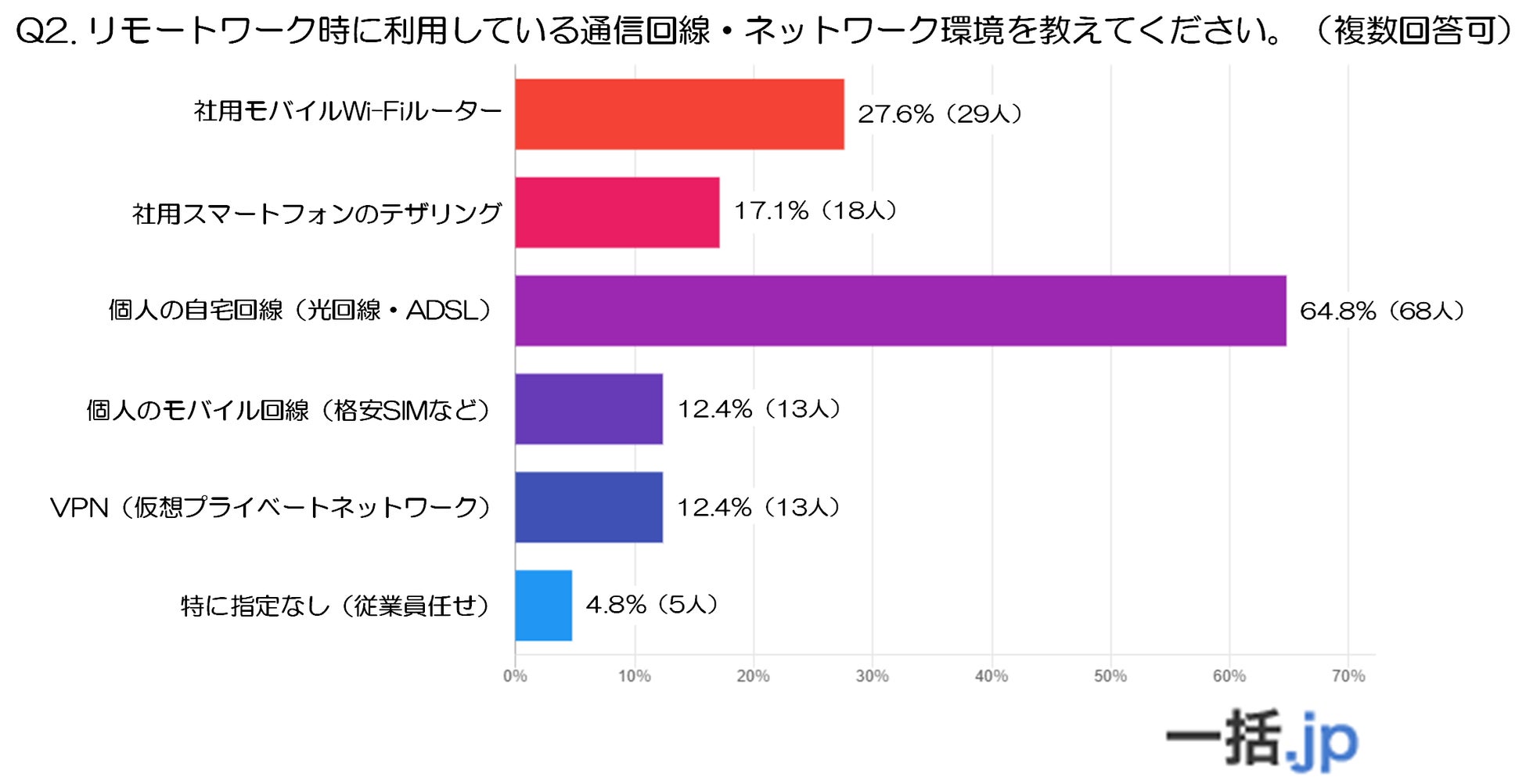 調査結果2:リモートワーク時に利用している通信回線・ネットワーク環境を教えてください。※複数選択可