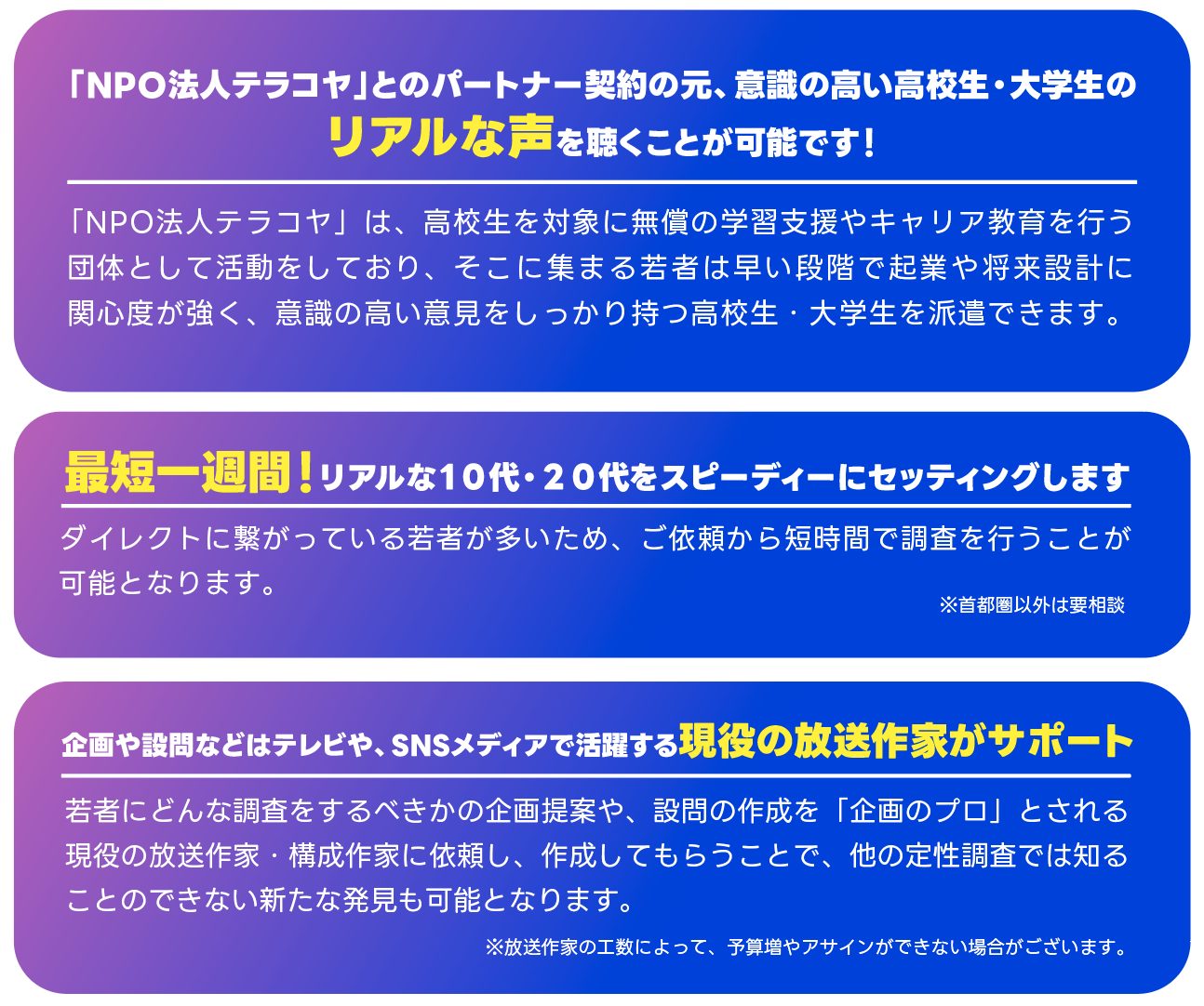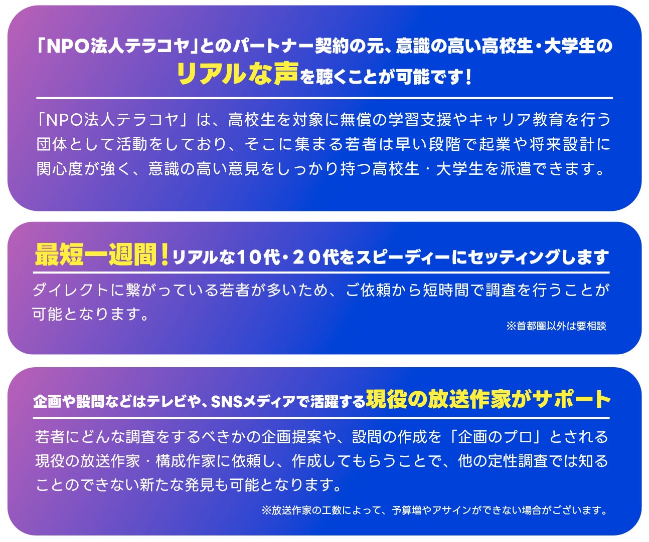 ■意識の高い高校生・大学生のリアルな声を聴くことが可能です