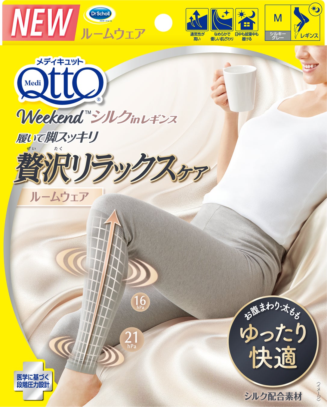 【メディキュット初のルームウェアが登場!】快適な履き心地×履いて脚スッキリ「メディキュット ウィークエンド シルクインレギンス」7月28日(木)に発売