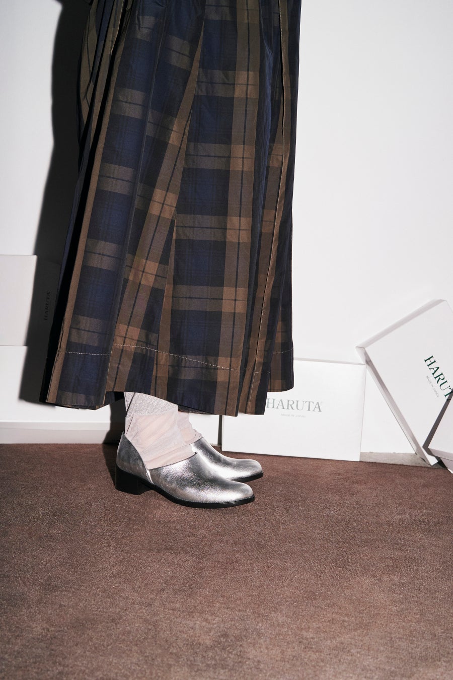 今年70周年を迎えたモデル「スポックシューズ」は、日常的に靴の着脱が多い日本人のライフスタイルや室内外を行き来する職業の人に向けて作られたシューズ。着脱の利便性を高めるために、靴の中央部分がV字形のスリットとなっているのが特徴。本モデルに、光沢のある本革のガラスレザーを採用し、モードエレガンスな印象になるようリデザイン。コインローファー同様、定番のホワイト、ブラックにELENDEEKらしいシルバーカラーを加えた3色展開します。