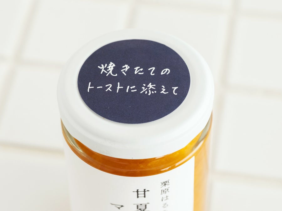 ビンの蓋部分には、このジャムを通じて皆さまへ「朝の時間を大事に、毎日を楽しんでほしい」という想いを込め、「焼きたてのトーストに添えて」という栗原はるみの手書きメッセージを添えました。