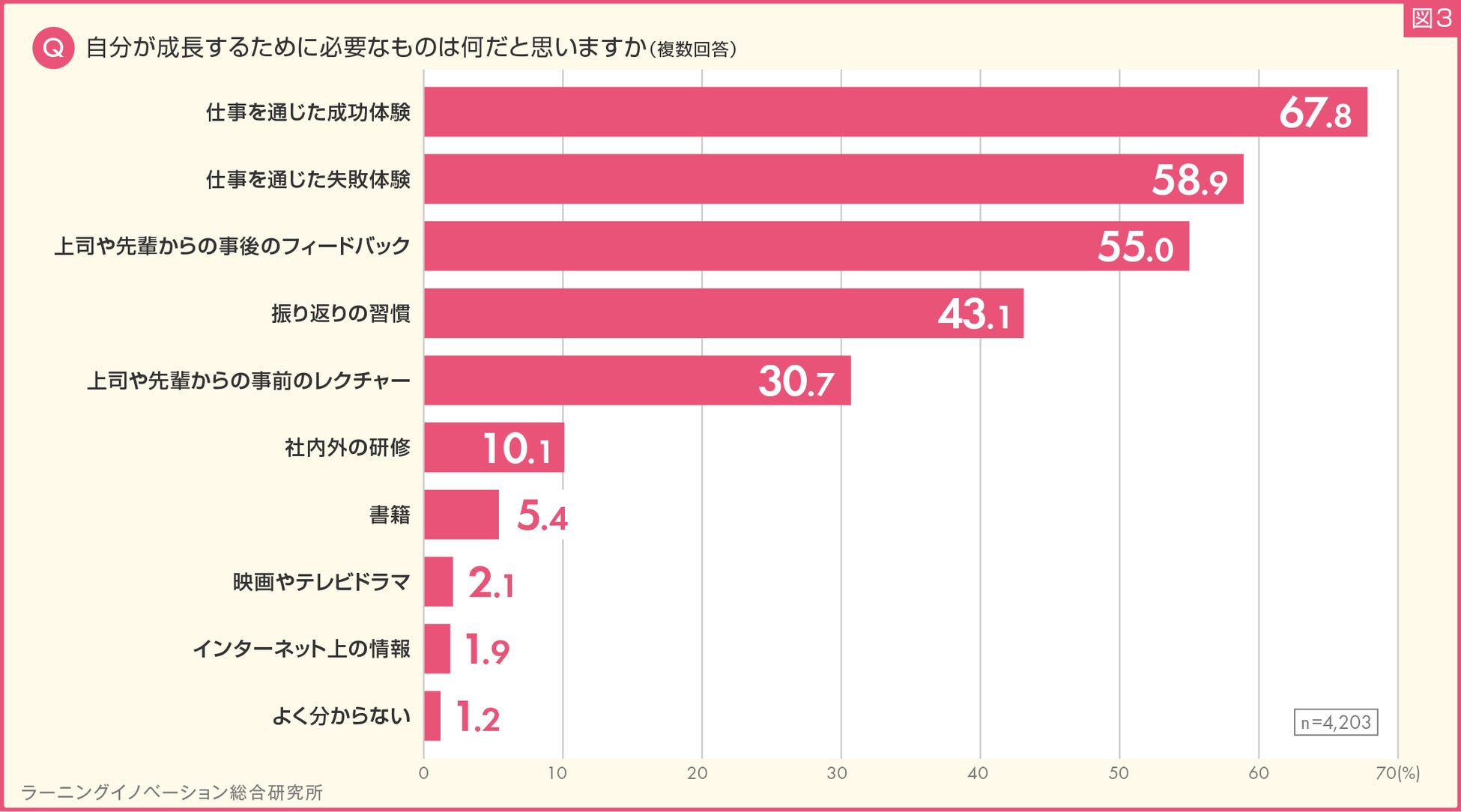 3. 自分の成長に必要なもの1位「成功体験」、2位「失敗体験」、3位「事後フィードバック」