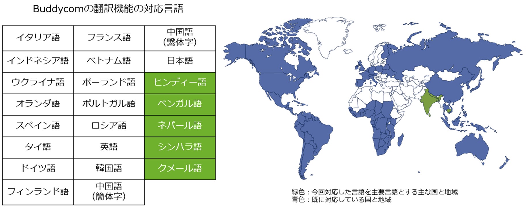 国際特許を取得したBuddycomの翻訳機能に5言語追加し合計23言語に対応