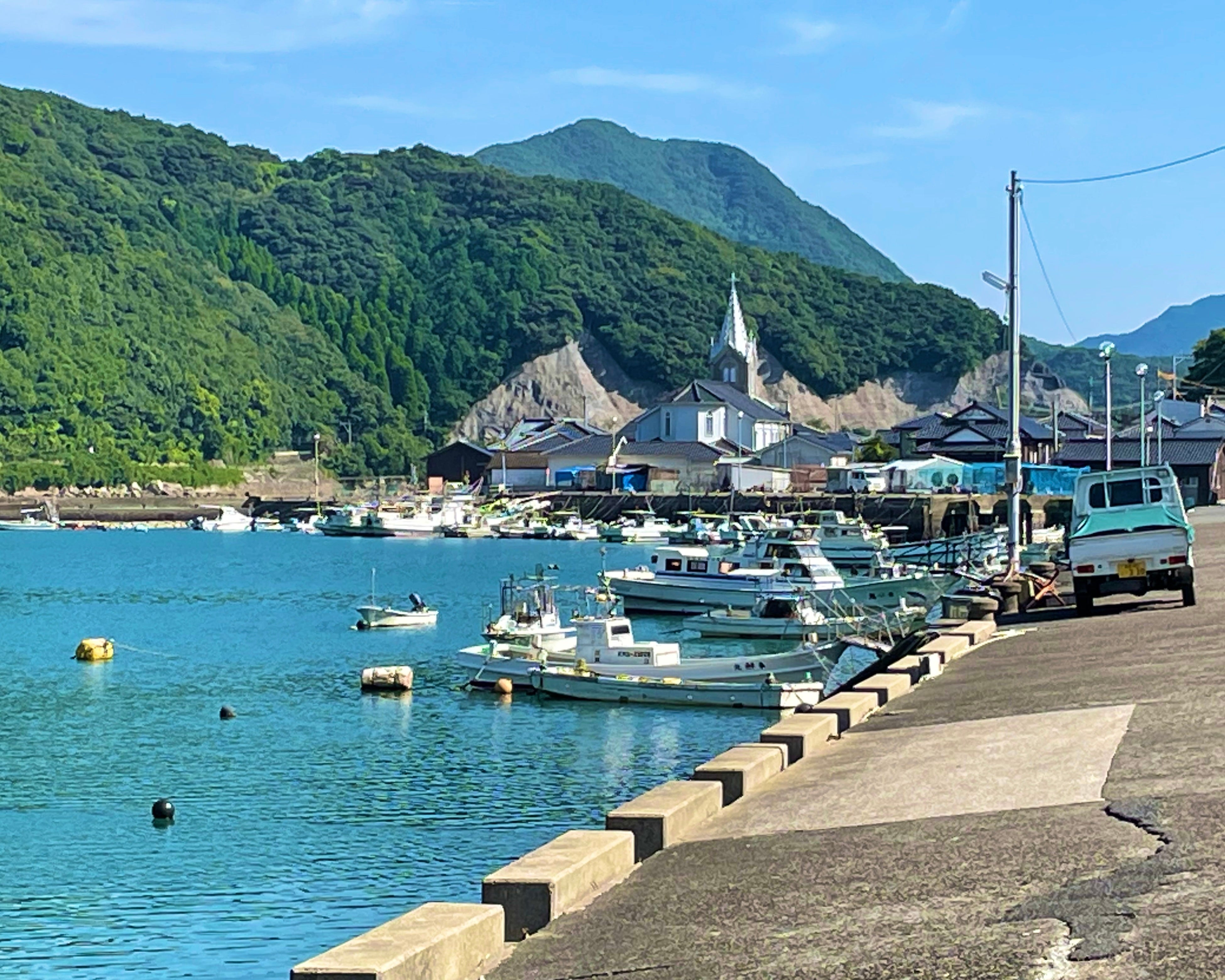 天草下島の南西部に位置する﨑津集落。保育園留学先地域としては初の1か月プランの募集をスタート。禁教期に仏教、神道、キリスト教が共存し、漁村特有の信仰形態を育んだ、歴史的な姿を今なお残す集落として世界遺産にも登録されています。海に囲まれた小さな集落の中で、のんびりと見守る子育て暮らしを1週間〜1か月の保育園留学で体験できます。