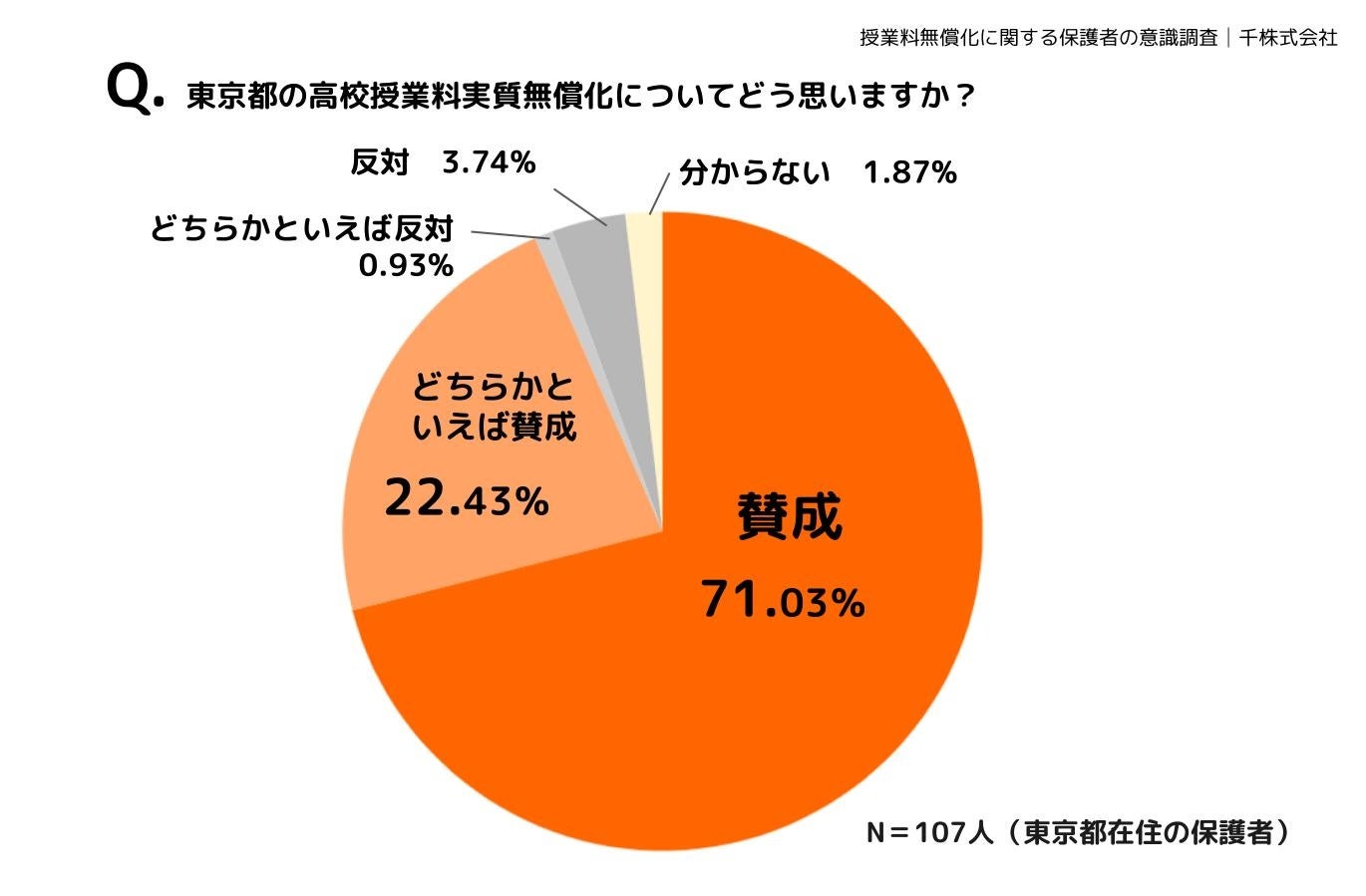 【授業料無償化に関する保護者の意識調査】東京都の高校授業料無償化 賛成71% 政府の多子世帯の大学無償化 賛成22%