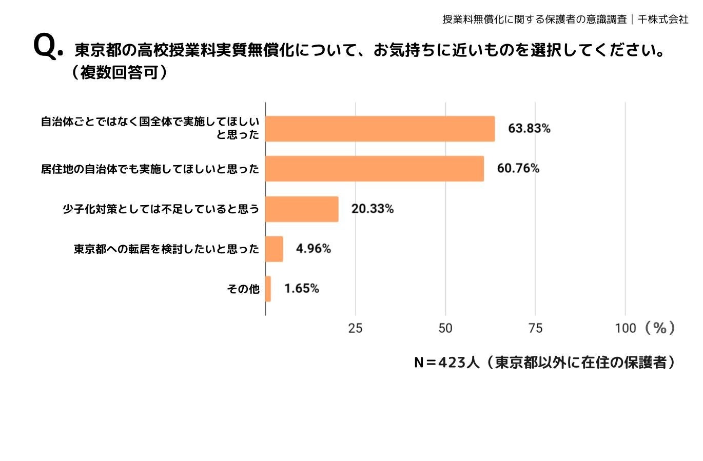 東京都以外に在住の保護者に、東京都の高校授業料無償化についてどう思うか質問したところ、