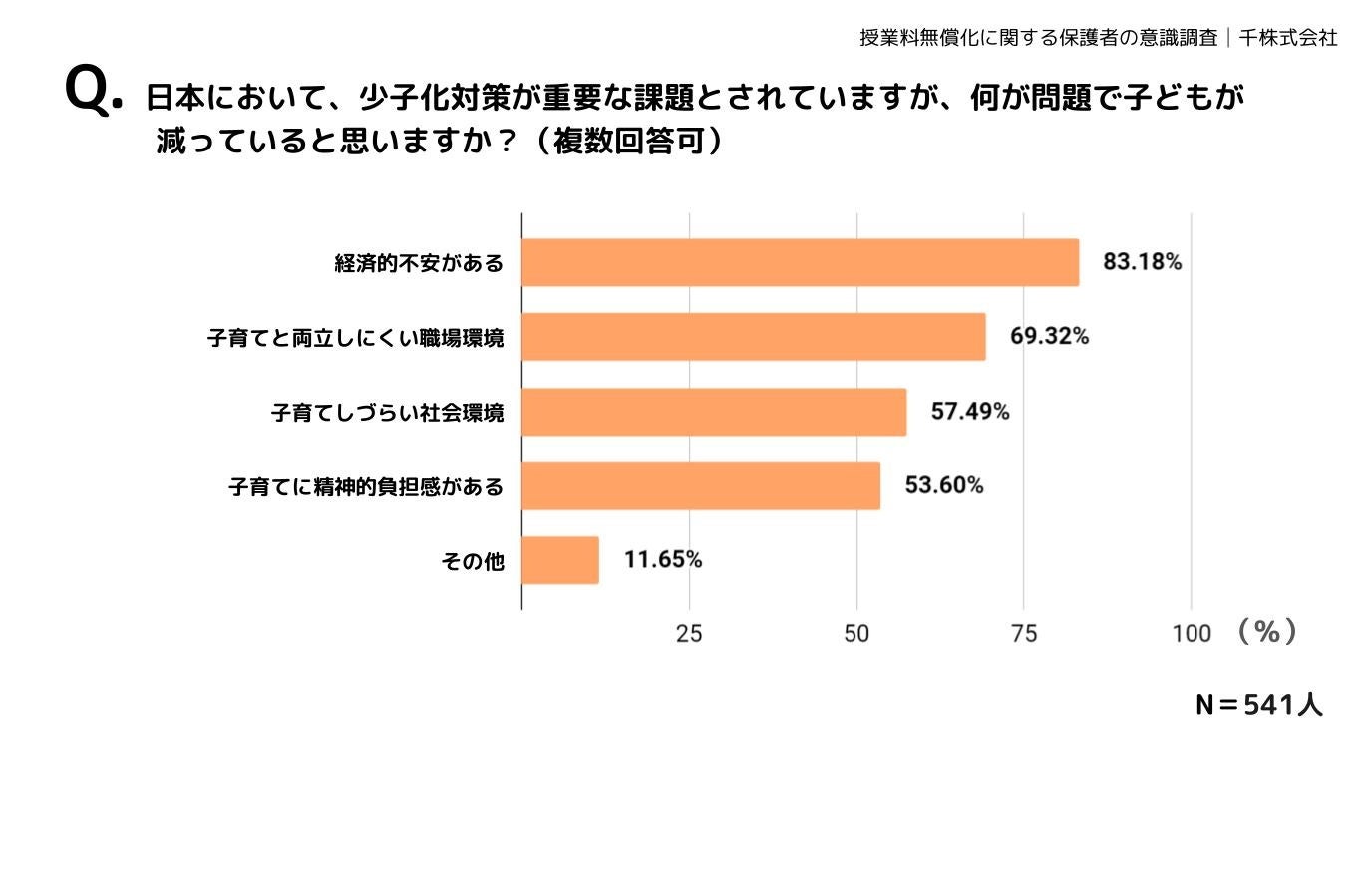 更に、何が問題で少子化が進んでいると思うか聞いたところ「経済的不安がある」(83.18%)が一番多い結果でした。