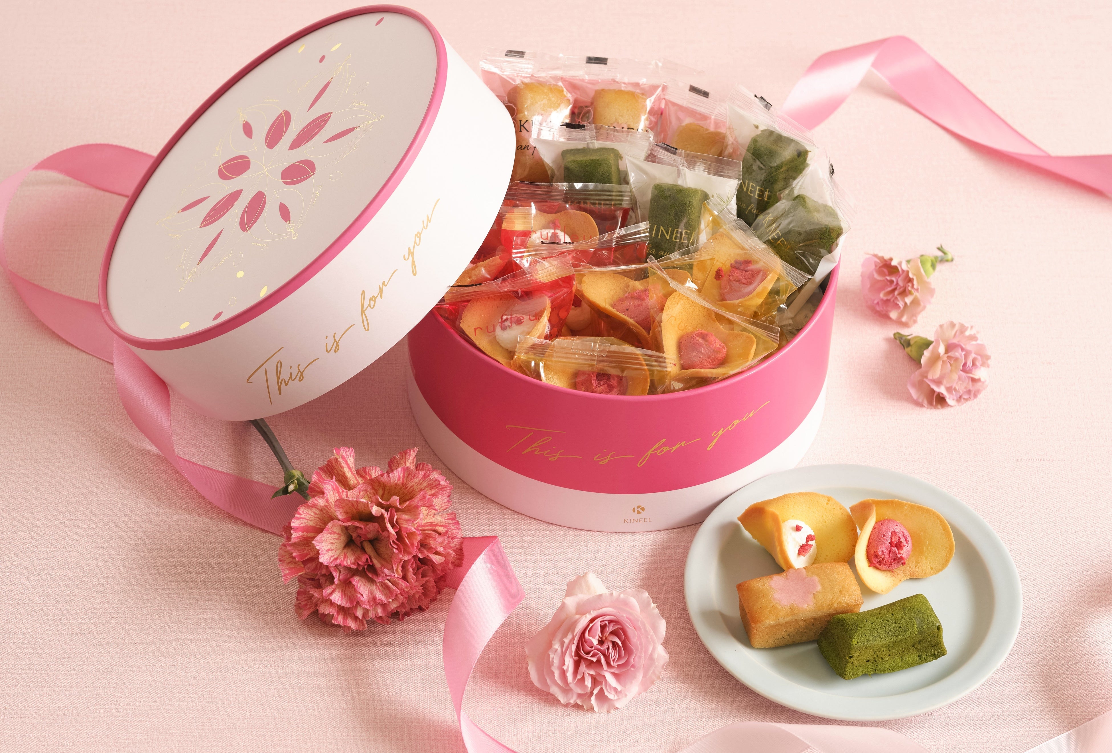 また、KINEELの人気商品である「ルフル」と「anフィナンシェ」がセットになった「GIFTBOX」は、花束のような可愛らしい焼き菓子が可憐な丸型の箱に入っているので、日頃お世話になっているお母さんへの贈り物にもピッタリです。