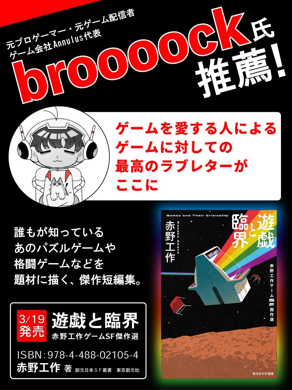 『遊戯と臨界 赤野工作ゲームSF傑作選』は3月19日発売です。