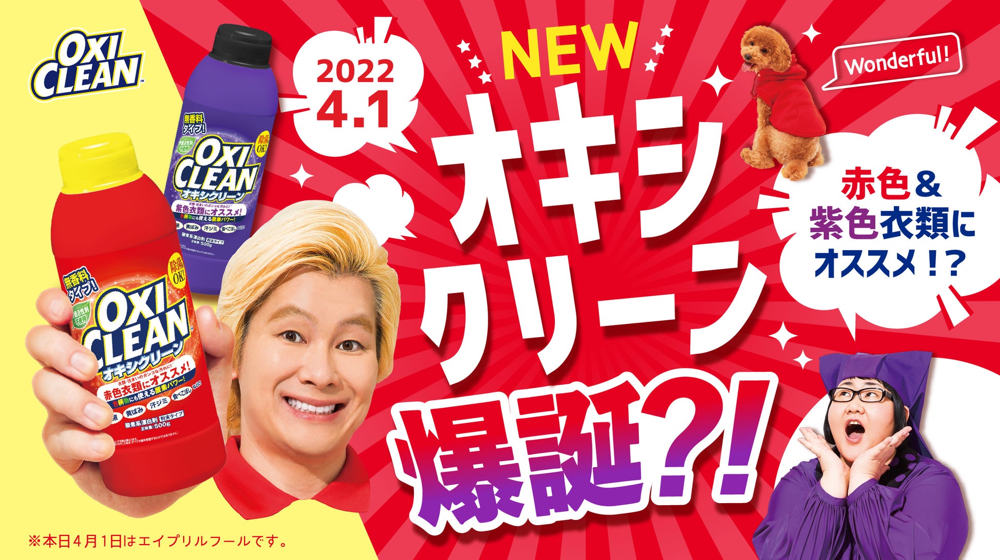 メイプル超合金カラー!!オキシクリーンから“赤色・紫色衣類専用漂白剤”が登場 2022年4月1日(金)限定発売