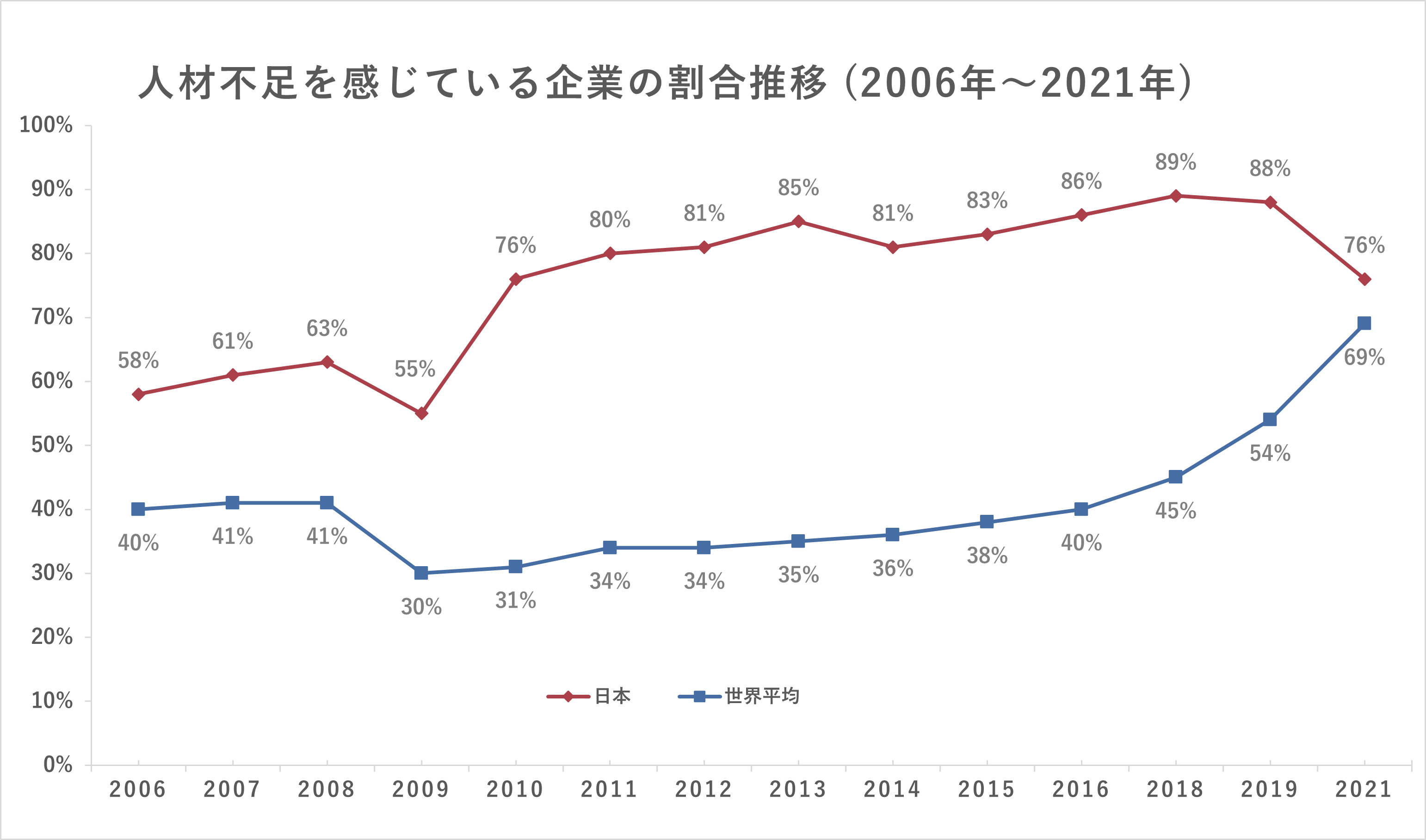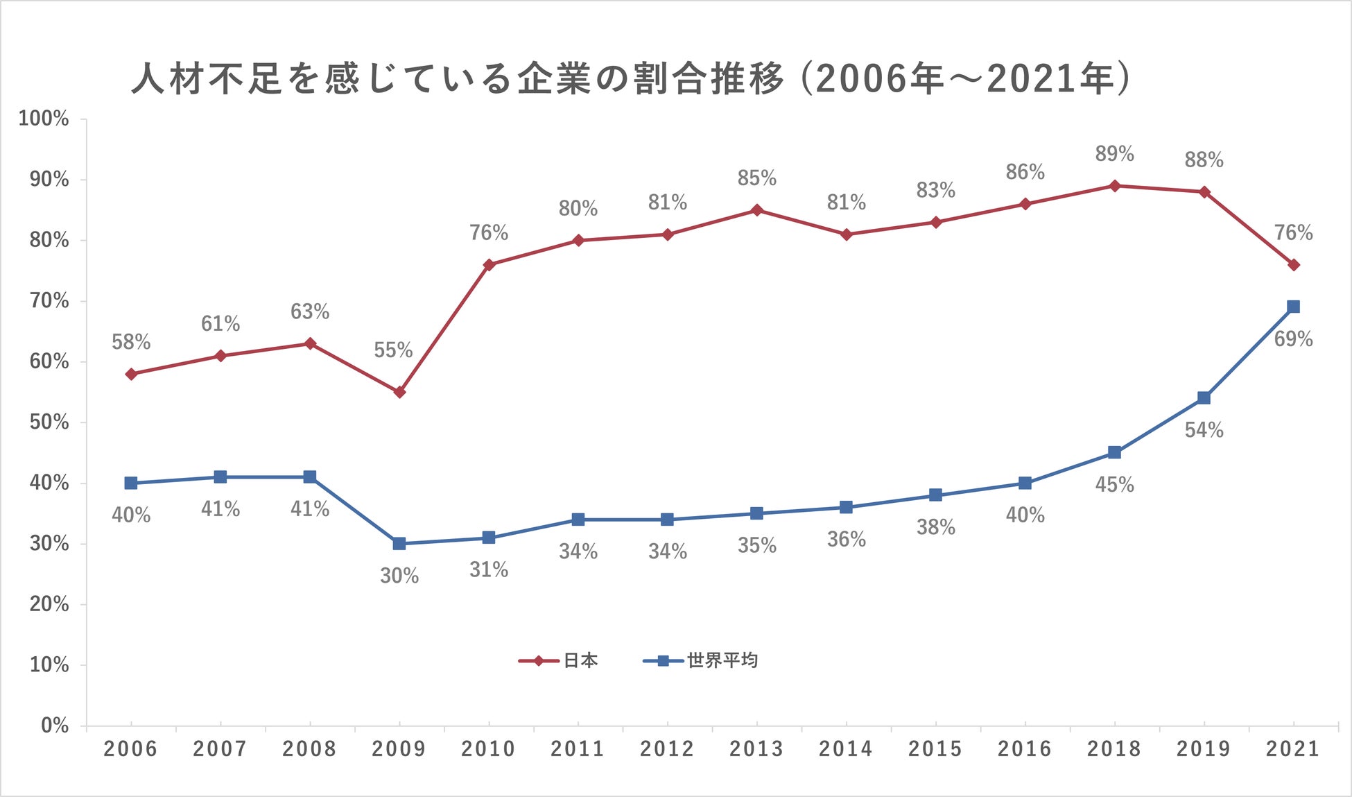 「人材確保が困難」と回答した企業の世界平均は69%、過去15年間で最も不足感が強い結果に