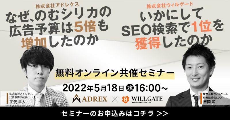 ウィルゲート、アドレクス社と《Web広告とSEOのスペシャリストが語る”勝つ”ためのWebマーケティング戦略講座》をテーマにオンラインセミナーを開催