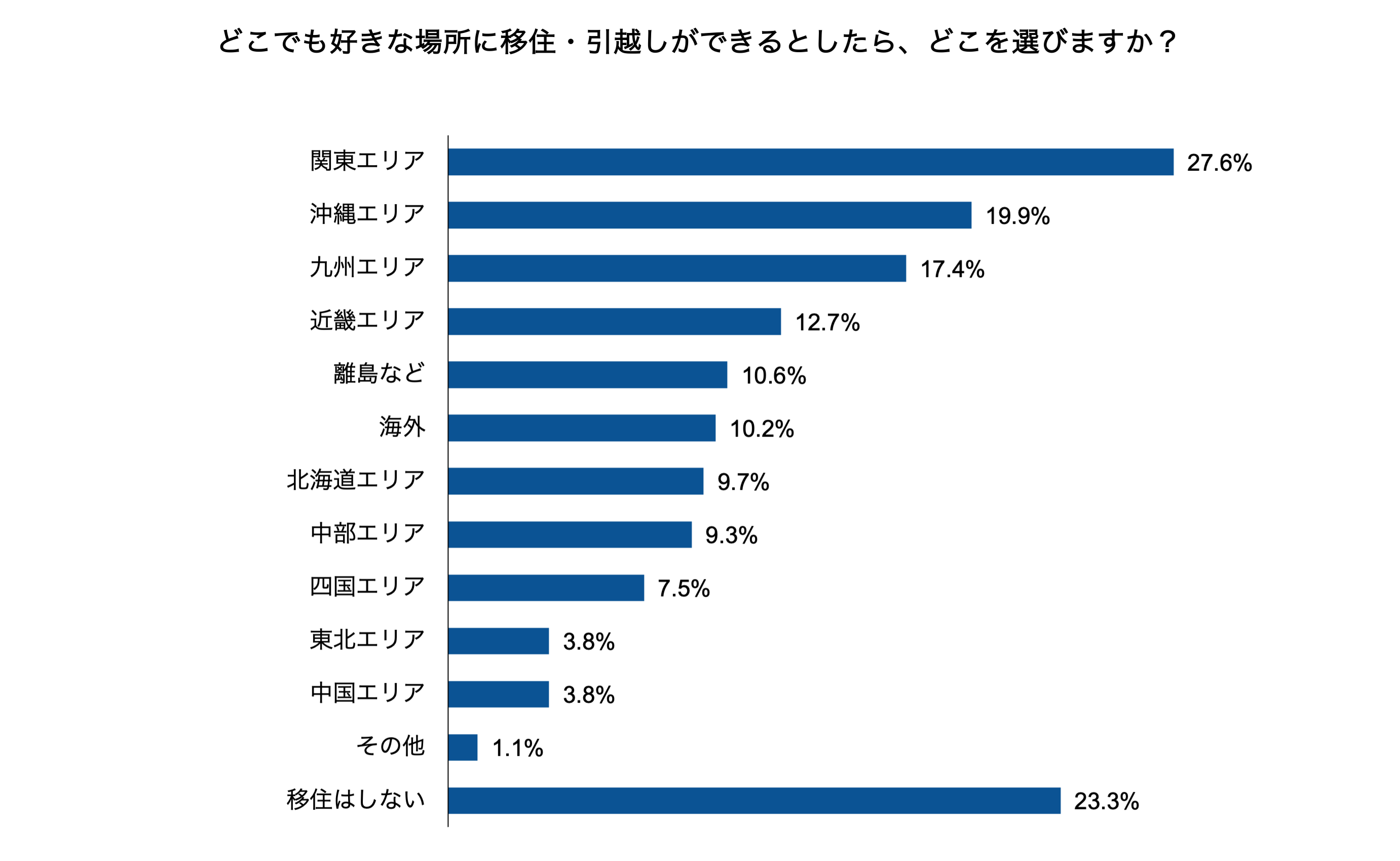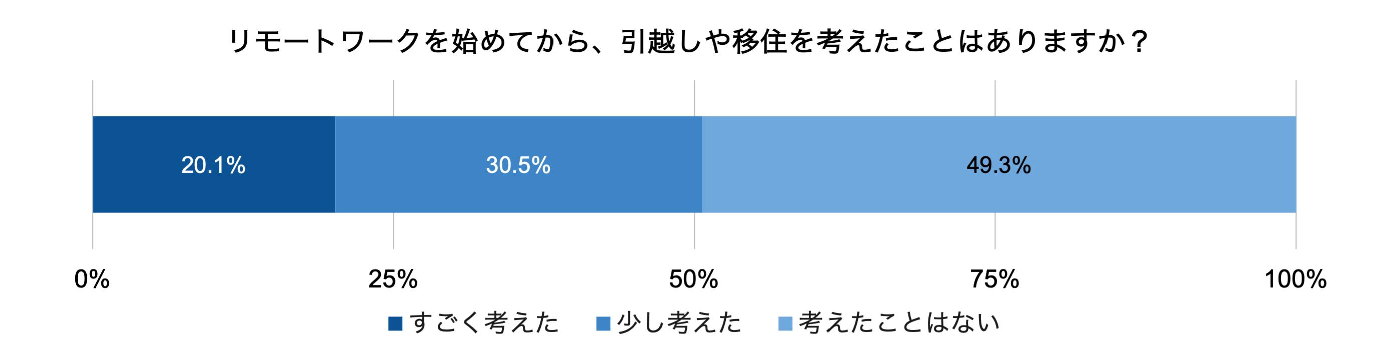 とはいえ、リモートワークを始めてから約半数(50.5%)が移住や引越しを考えたことがあると回答(図表7)しています。アンケート結果では沖縄なども人気ですが、「便利な関東圏に住みながら、通勤をしないのが理想」と考える人が多いのかもしれません。