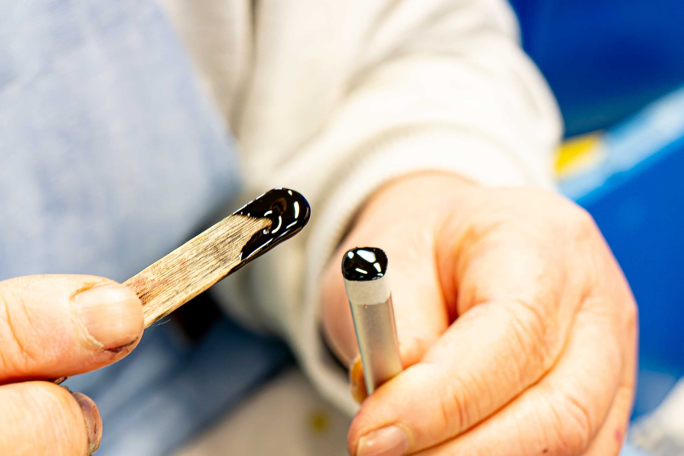 若狭塗箸の伝統を守りつつ、新旧の技をクロスさせて、ひとつひとつ息吹を吹き込まれる若狭産塗箸。