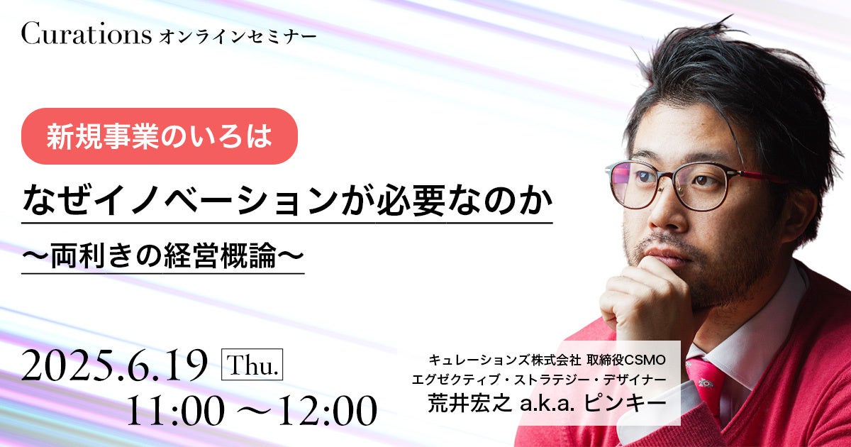 顧客企業のビジネス変革を成功に導くキュレーションズ株式会社(本社:東京都渋谷区、担当:野崎、以下当社)は、「【新規事業のいろは】なぜイノベーションが必要なのか 〜両利きの経営概論〜」を2025年6月19日(木)に開催いたします。