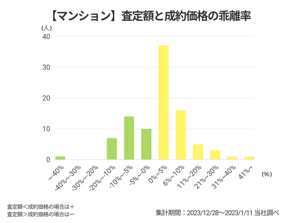 調査の結果、全体の6割以上が、不動産の売買において、査定額よりも成約価格のほうが高くなっていることがわかりました。