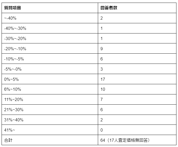また、査定額と成約価格の乖離率は0%~5%(17人)が最多でした。(17人査定価格無回答)