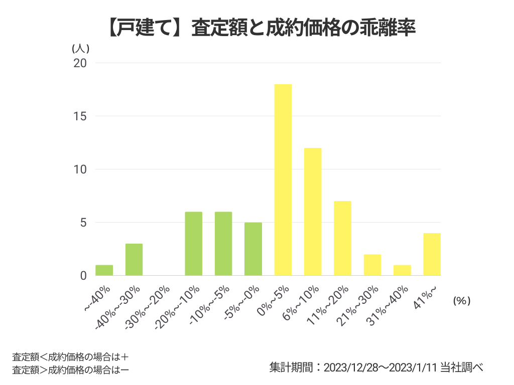 また、査定額と成約価格の乖離率は0%~5%(18人)が最多でした。(18人査定価格無回答)