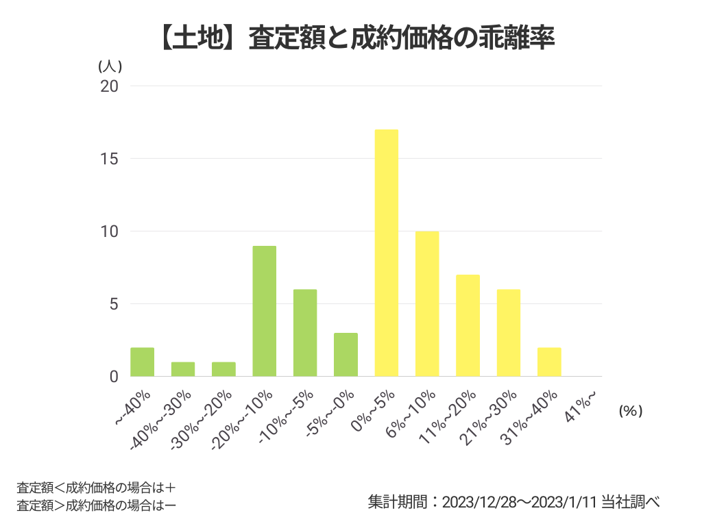 また、マンション・戸建て・土地共に査定額と成約価格の乖離率は0%~5%が最も多いことがわかりました。