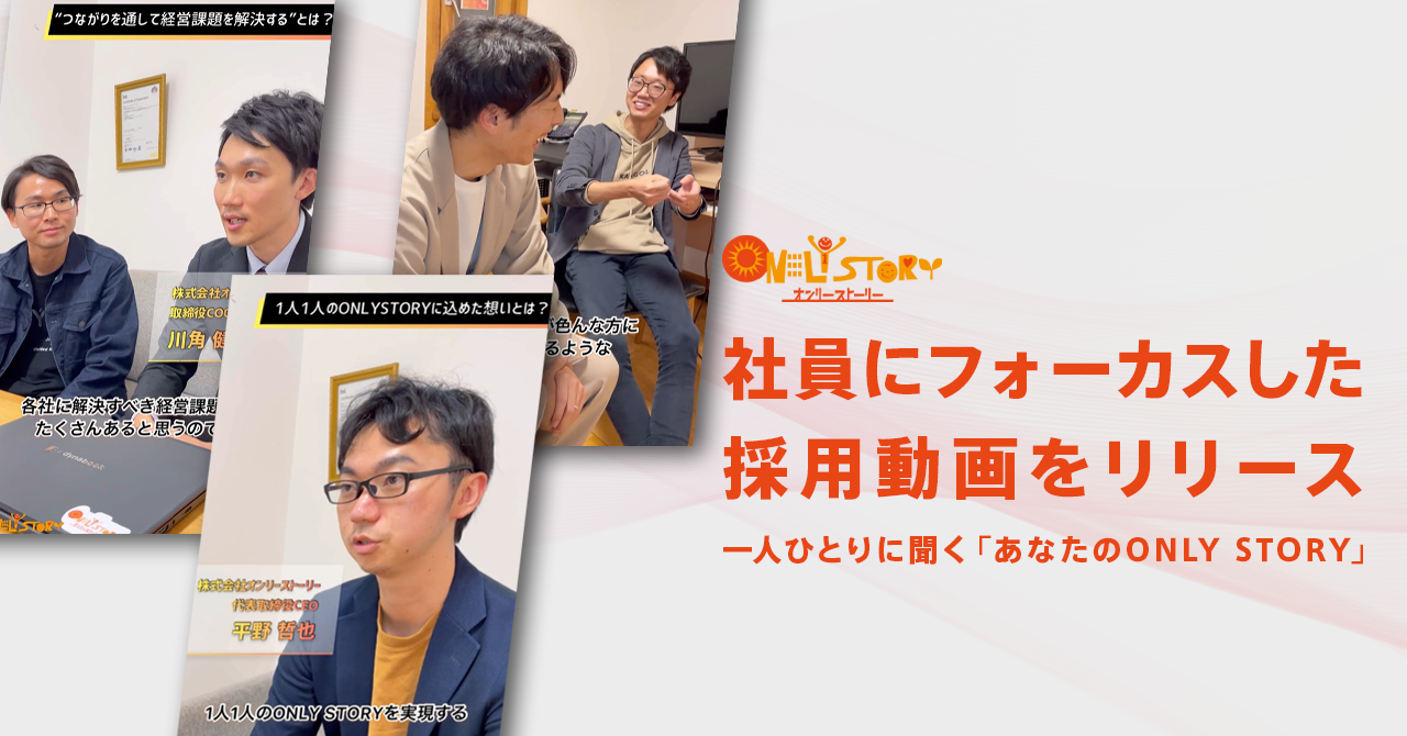 弊社は「1人ひとりのONLYSTORYの実現」という理念を掲げています。動画内で社員のONLY STORY(=実現したい夢や目指している目標など)を聞くことで、社員がどのような点に働きがいを感じているのかが分かります。求職者が当社を入社先として選ぶ際の判断材料や安心材料になることを目的としています。