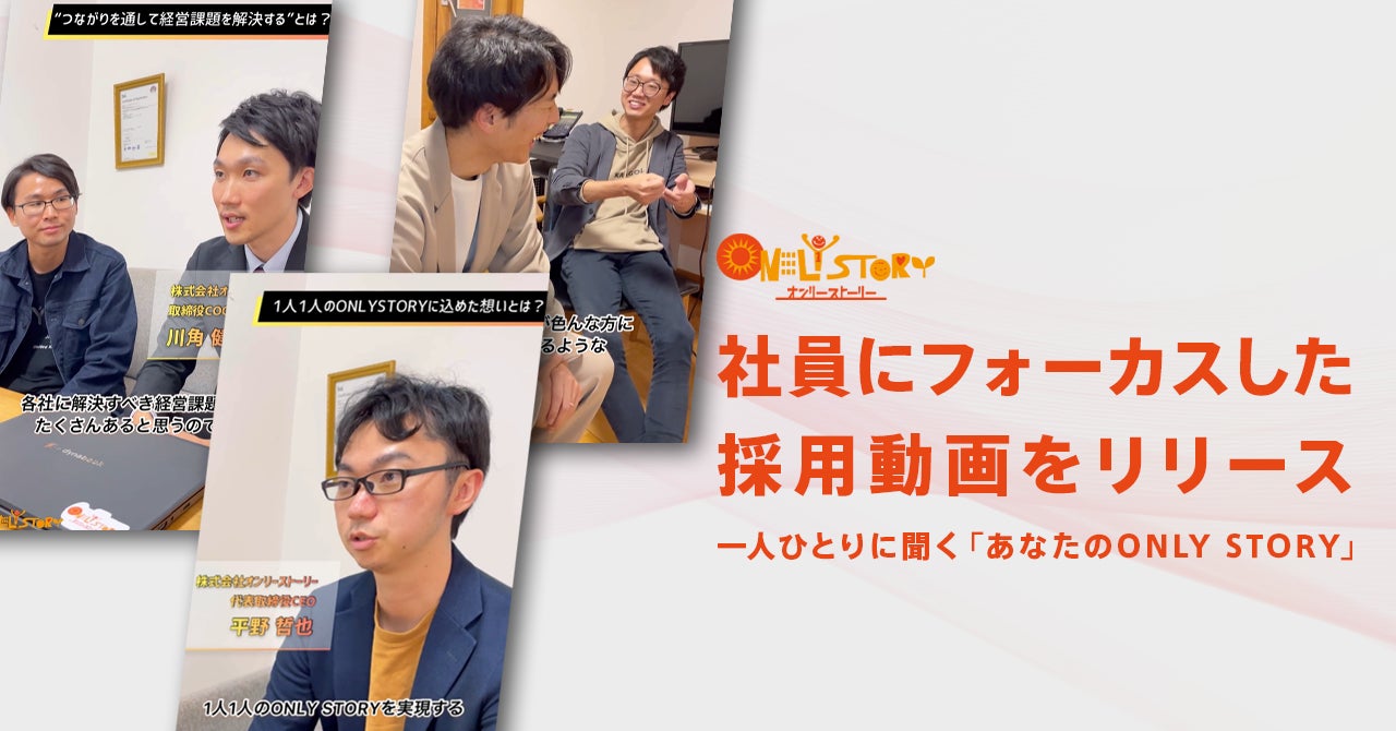 審査制・決裁者マッチング支援SaaS「ONLY STORY(URL:https://onlystory.co.jp/ )」を運営する株式会社オンリーストーリー(代表取締役:平野哲也、本社:東京都渋谷区)は、株式会社moovyが提供する「moovy」を利用して制作した採用動画をリリース致しました。リモート環境下での採用活動におけるミスマッチを防ぎ、適切に弊社文化・理念・人を伝えるために「社員にとってのONLY STORY(夢・目標)」をインタビューしています。