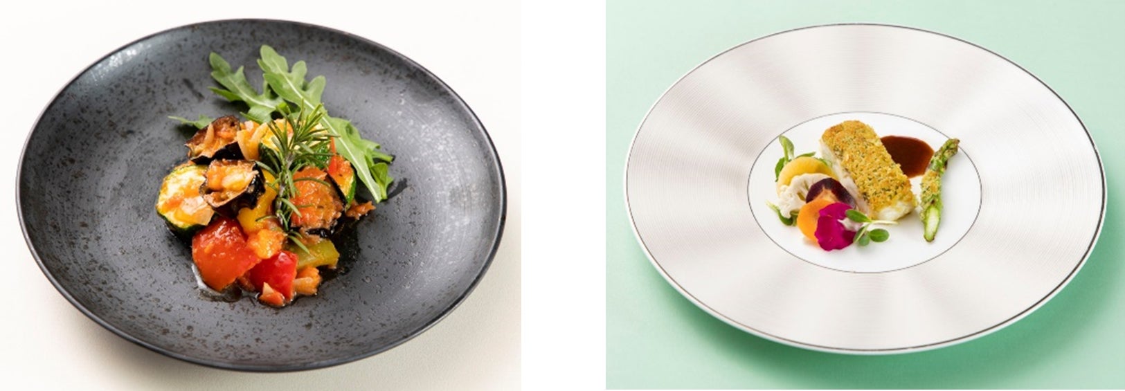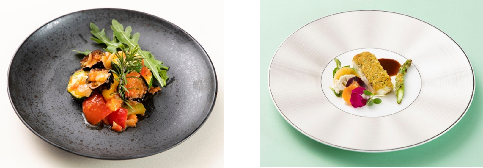 ・宮崎県産佐土原茄子と宮崎県産カラーピーマンのラタトゥイユ(写真左)