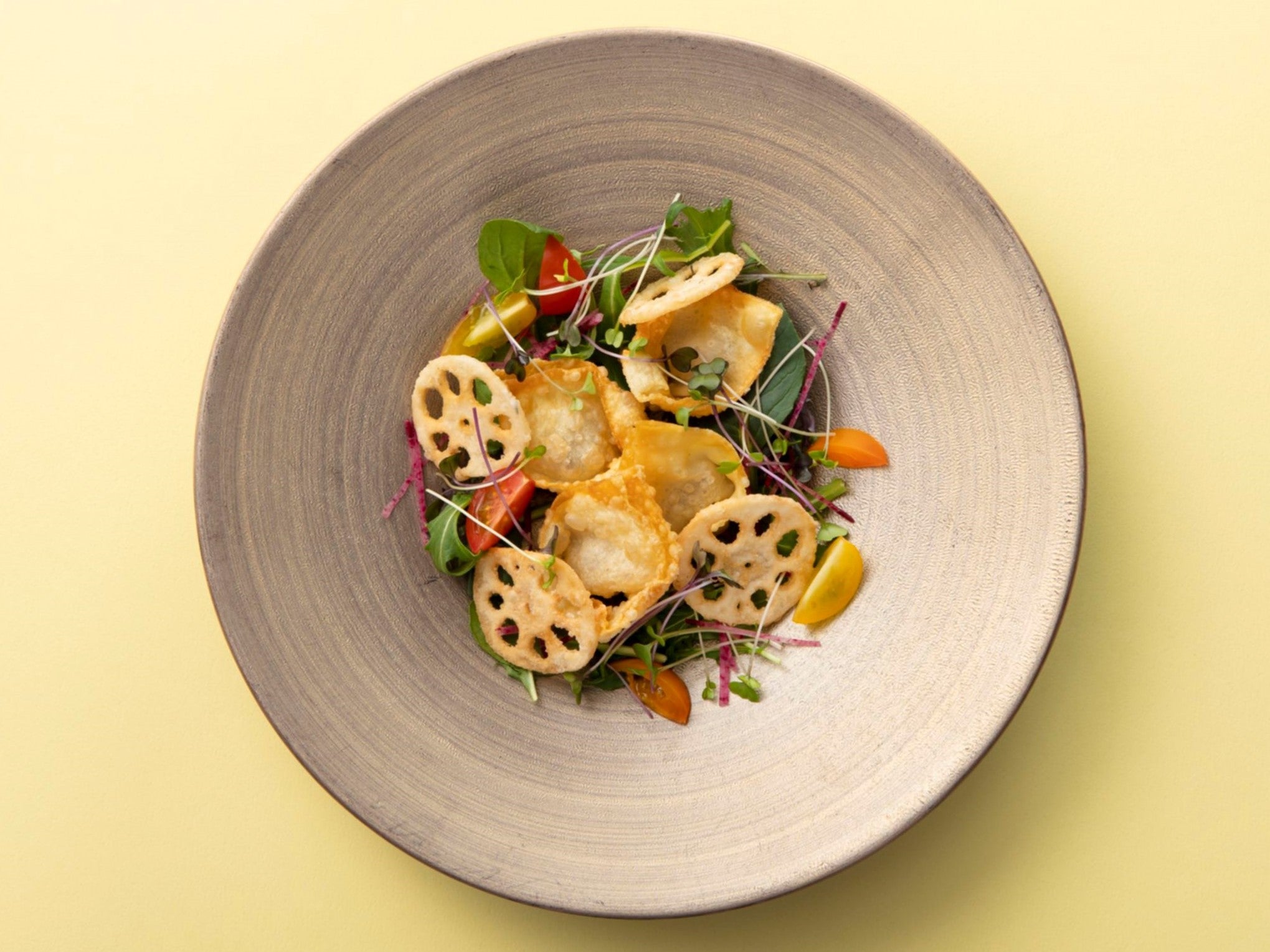 ・小鰯のフリット サラダ仕立て 岩国れんこんのガレット添え(写真右)