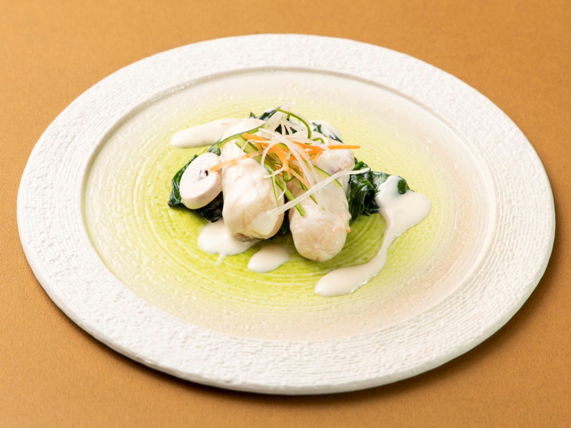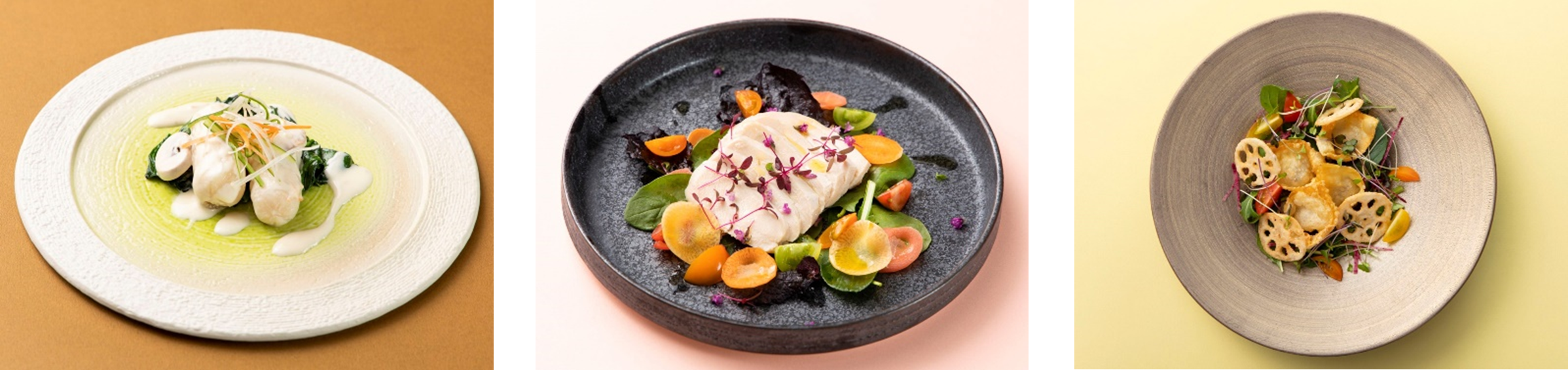・淡路鶏の柔らか蒸し、灘の酒粕と六甲味噌の香り(写真中央)